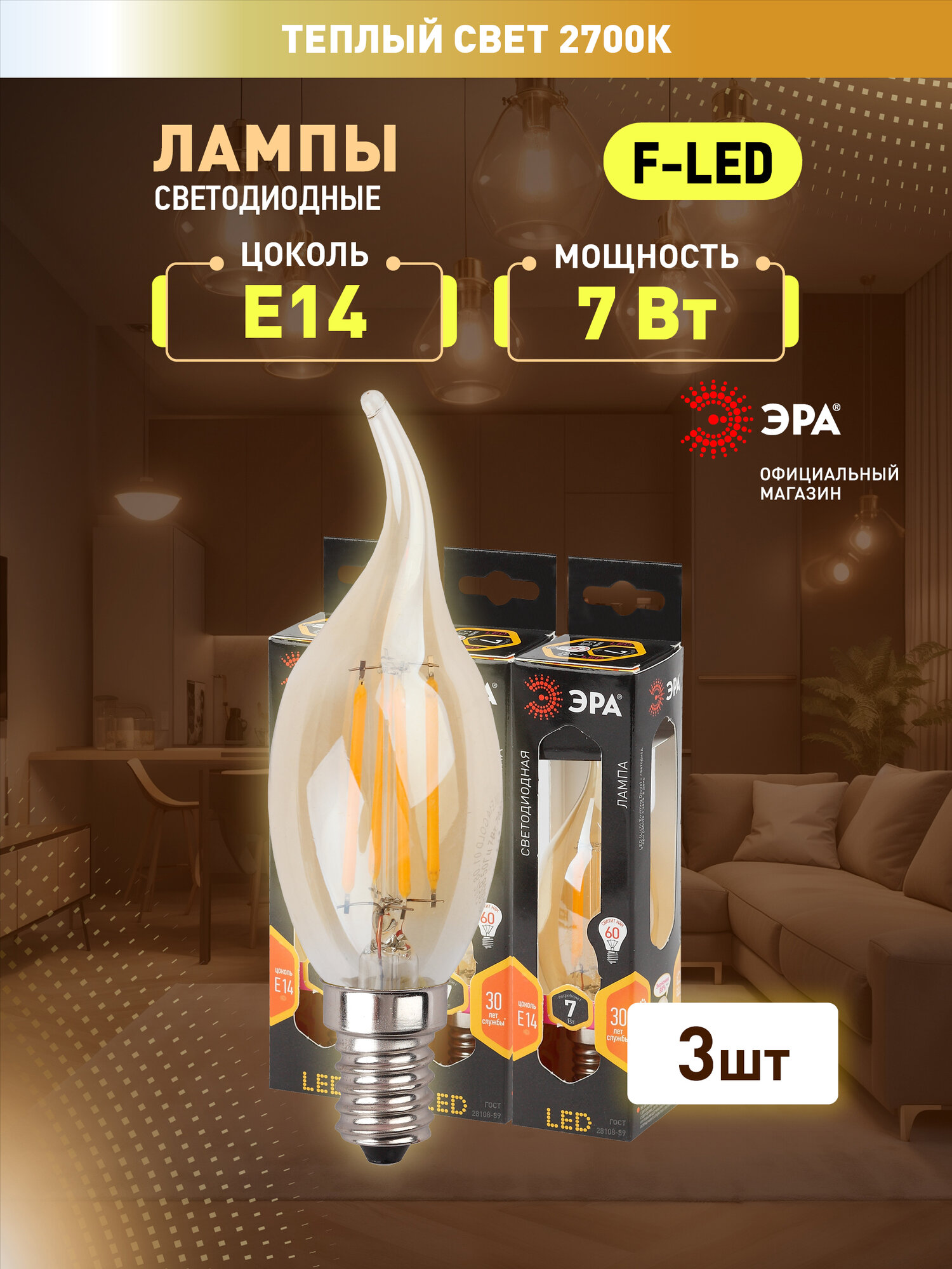 Отзывы на Набор светодиодных лампочек ЭРА F-LED BXS-7W-827-E14 2700K свеча на ветру 7 Вт 3 штуки