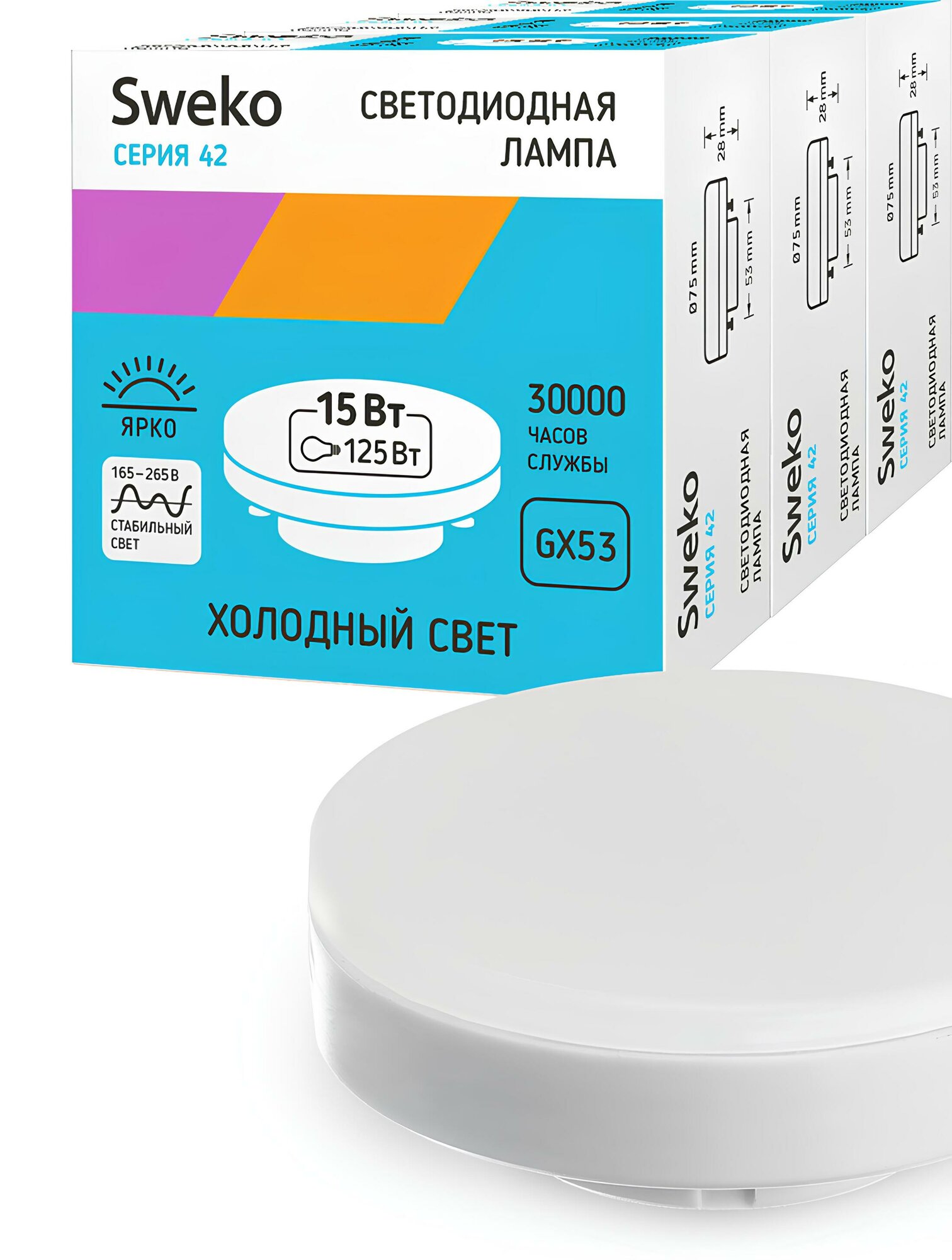 10 цен на Лампа диодная Sweko 3 штуки холодная GX53 15Вт 4000/1390лм 165-265В
