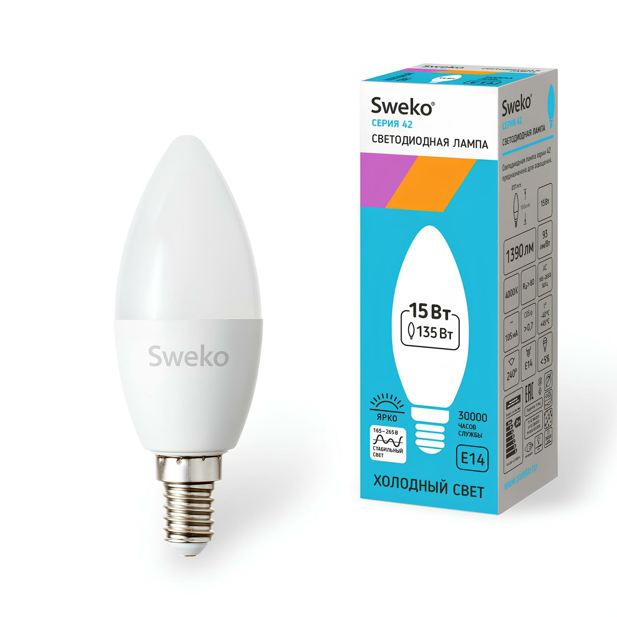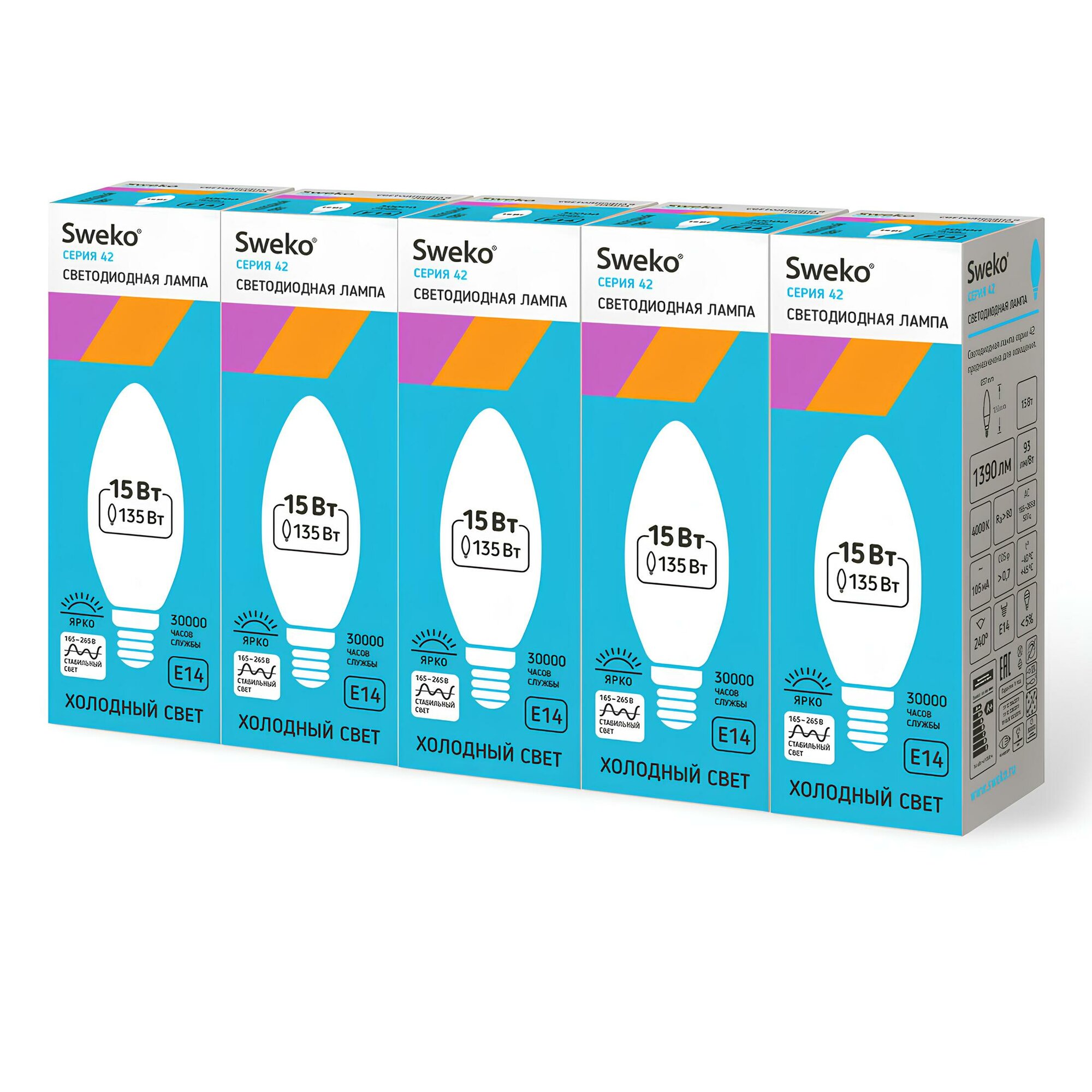 10 цен на Лампа диодная Sweko 5 шт свеча холодная E14 15Вт дм35 4000К/1390лм