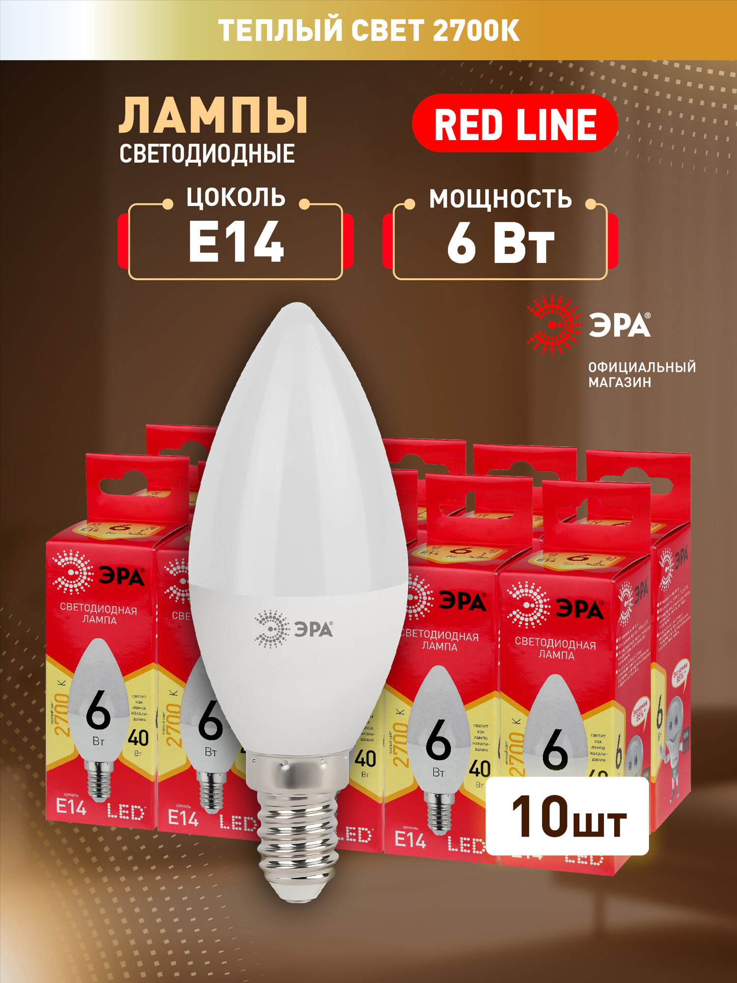 10 цен на Набор светодиодных лампочек ЭРА LED B35-6W-827-E14 R 2700K свеча 6 Вт 10 штук