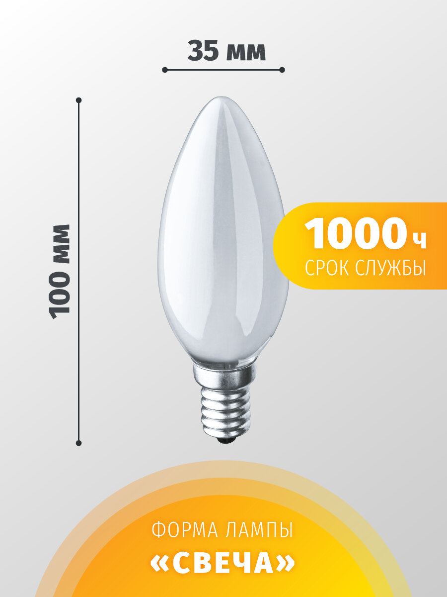 Отзывы на Лампа накаливания Navigator 94 309 NI-B, свеча, 60 Вт, Е14, упаковка 10 шт