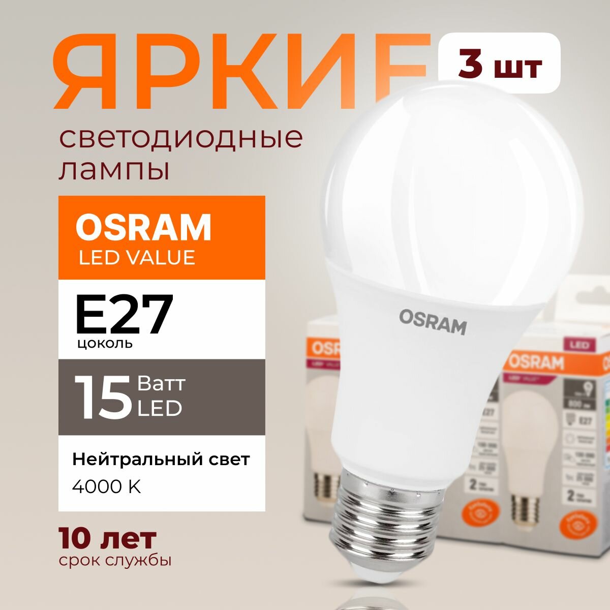 Отзывы на Лампочка светодиодная Е27 Osram 15 Ватт нейтральный свет 4000K Led Value 840 А60 груша FR матовая 1200лм набор 3шт