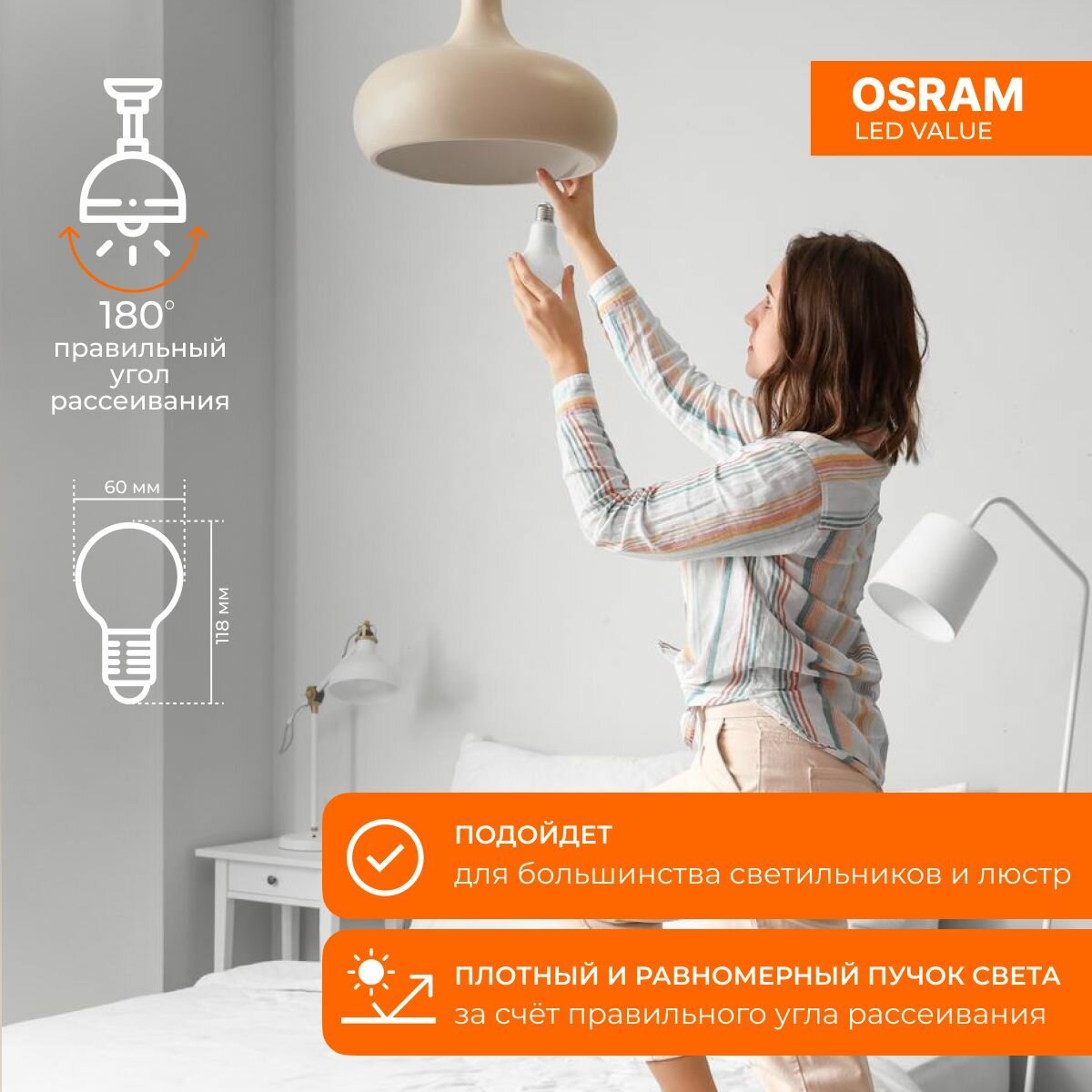 Лампочка светодиодная Е27 Osram 15 Ватт нейтральный свет 4000K Led Value 840 А60 груша FR матовая 1200лм набор 3шт информация:
