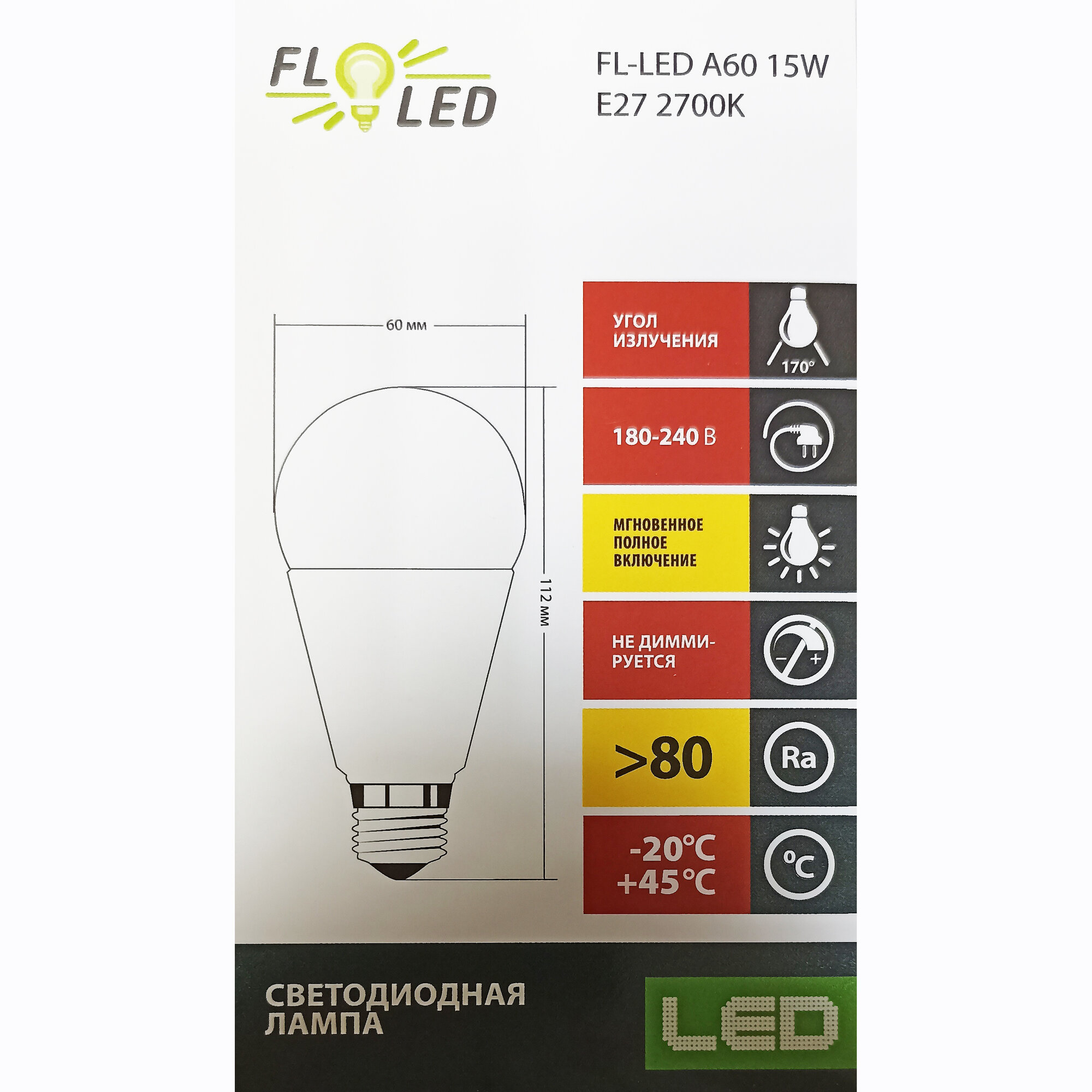 10 цен на 1шт/уп. Лампа LED Груша A60 15W E27 2700К 220В 1500Лм 60*112мм Свет теплый-белый, Foton Lighting, уп. 1шт