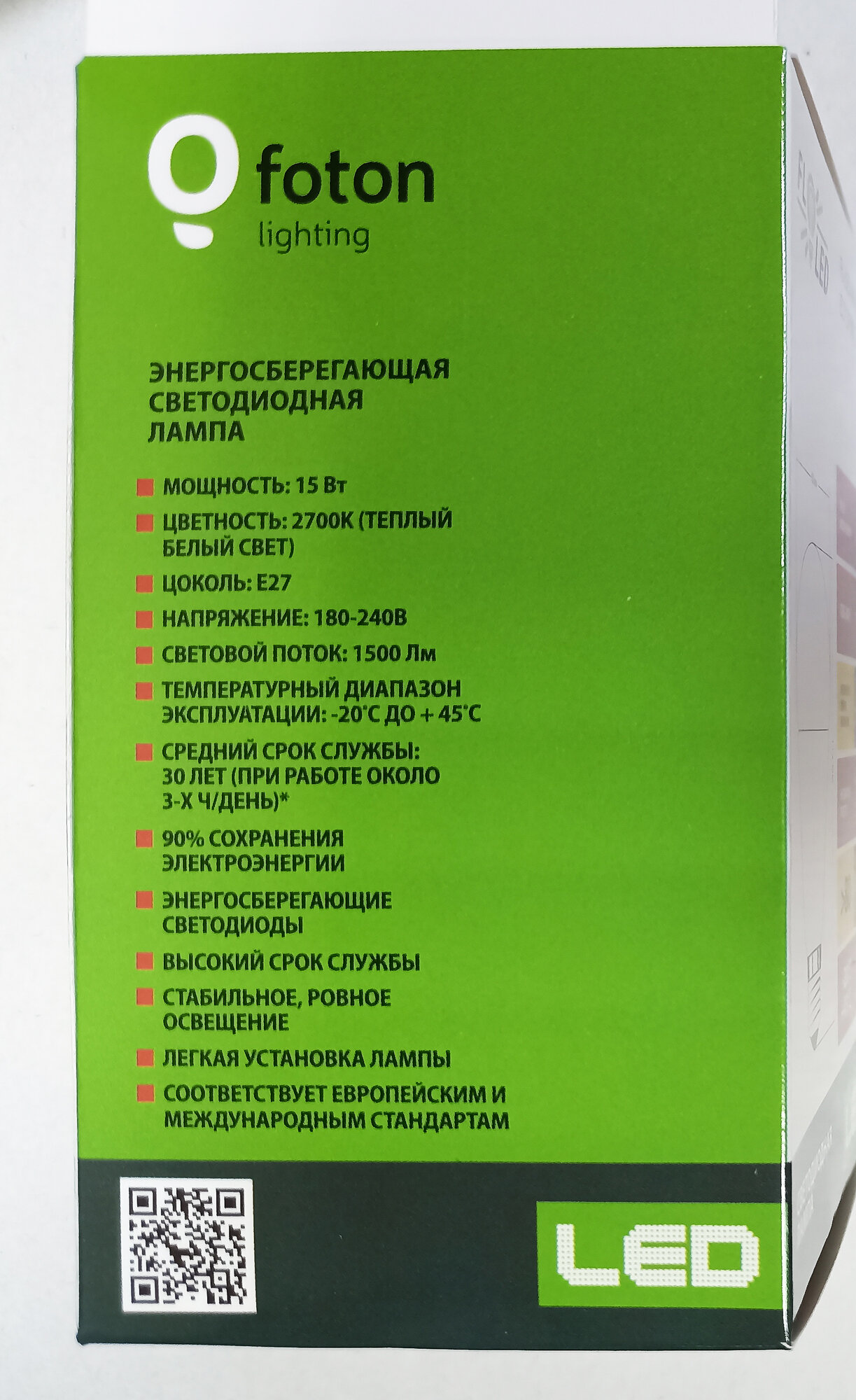 Отзывы на 1шт/уп. Лампа LED Груша A60 15W E27 2700К 220В 1500Лм 60*112мм Свет теплый-белый, Foton Lighting, уп. 1шт