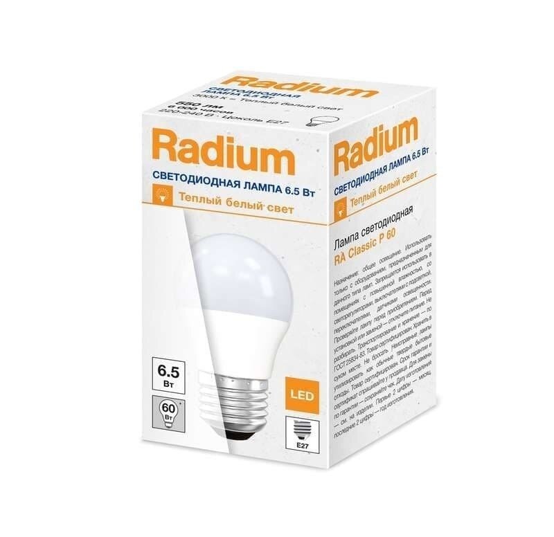 5шт/уп. Лампа LED Шарик 6.5Вт 220-240В E27 550Лм 3000К Угол 180 град. d 47mm h 88mm Свет Теплый белый Rad ium, уп. 5шт информация: