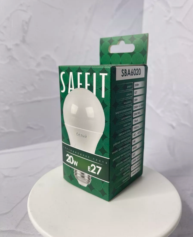 Лампа Saffit, E27, 20Вт, 4000K, дневной белый свет, срок службы 10 тыс. часов информация: