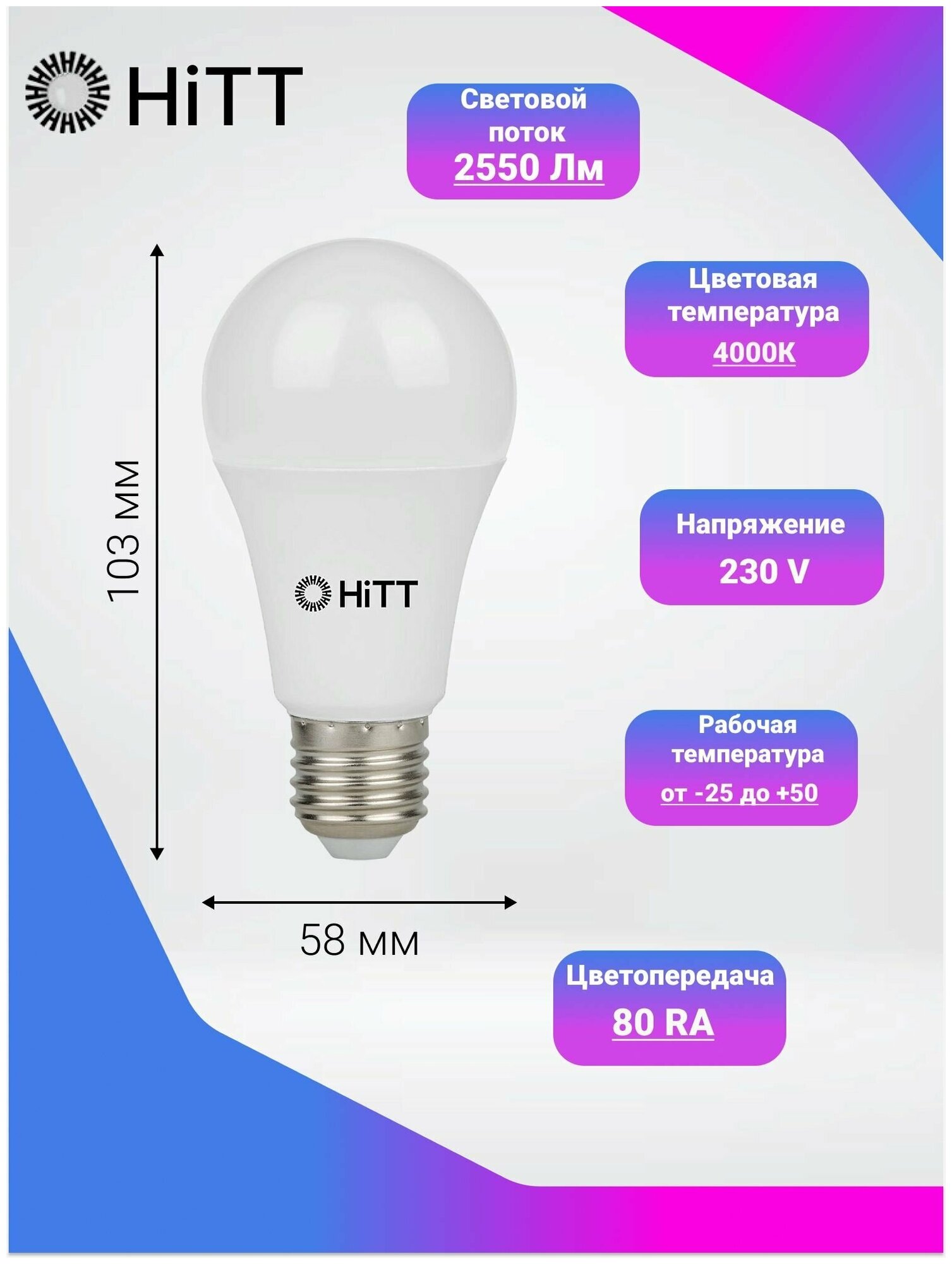 HiTT Лампочка светодиодная E27, 25Вт, 4000К, 1010014, 1 шт. информация: