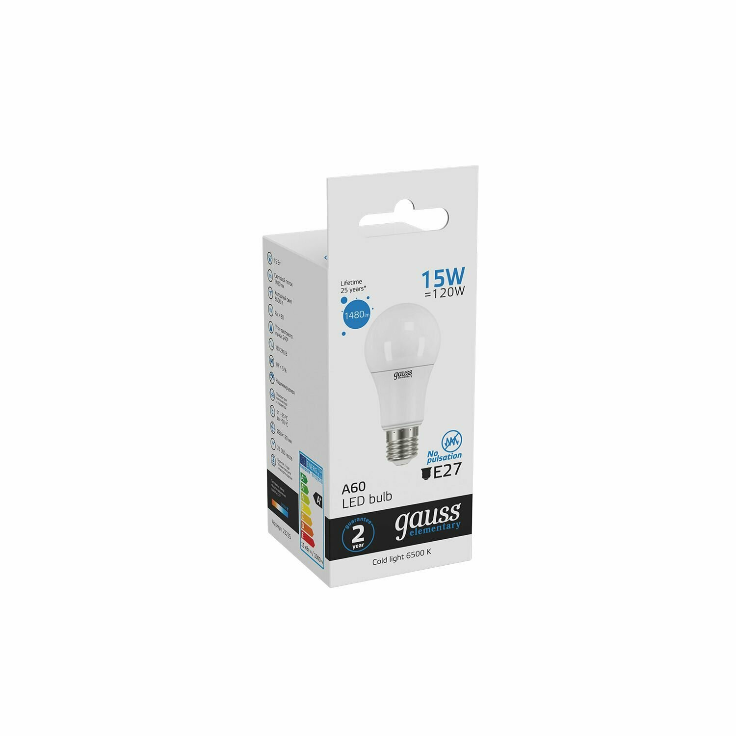 Отзывы на 2шт/уп. Лампа LED Груша 15Вт 230B A60 E27 1480Лм 6500К Свет Холодный белый арт. 23235 Gauss, уп. 2шт