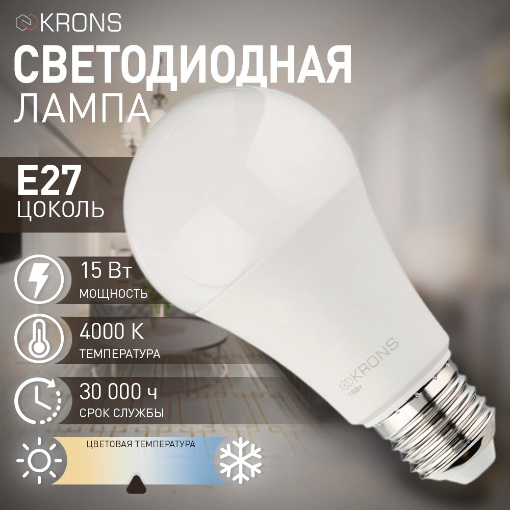 Светодиодная лампа KRONS 15 Вт Е27/А дневной свет информация: