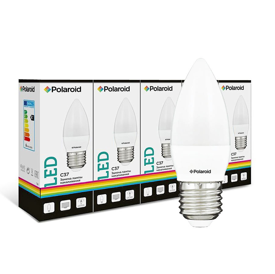 Светодиодная лампа Polaroid 220V C37 7W 6500K E27 600lm (5 шт.) информация: