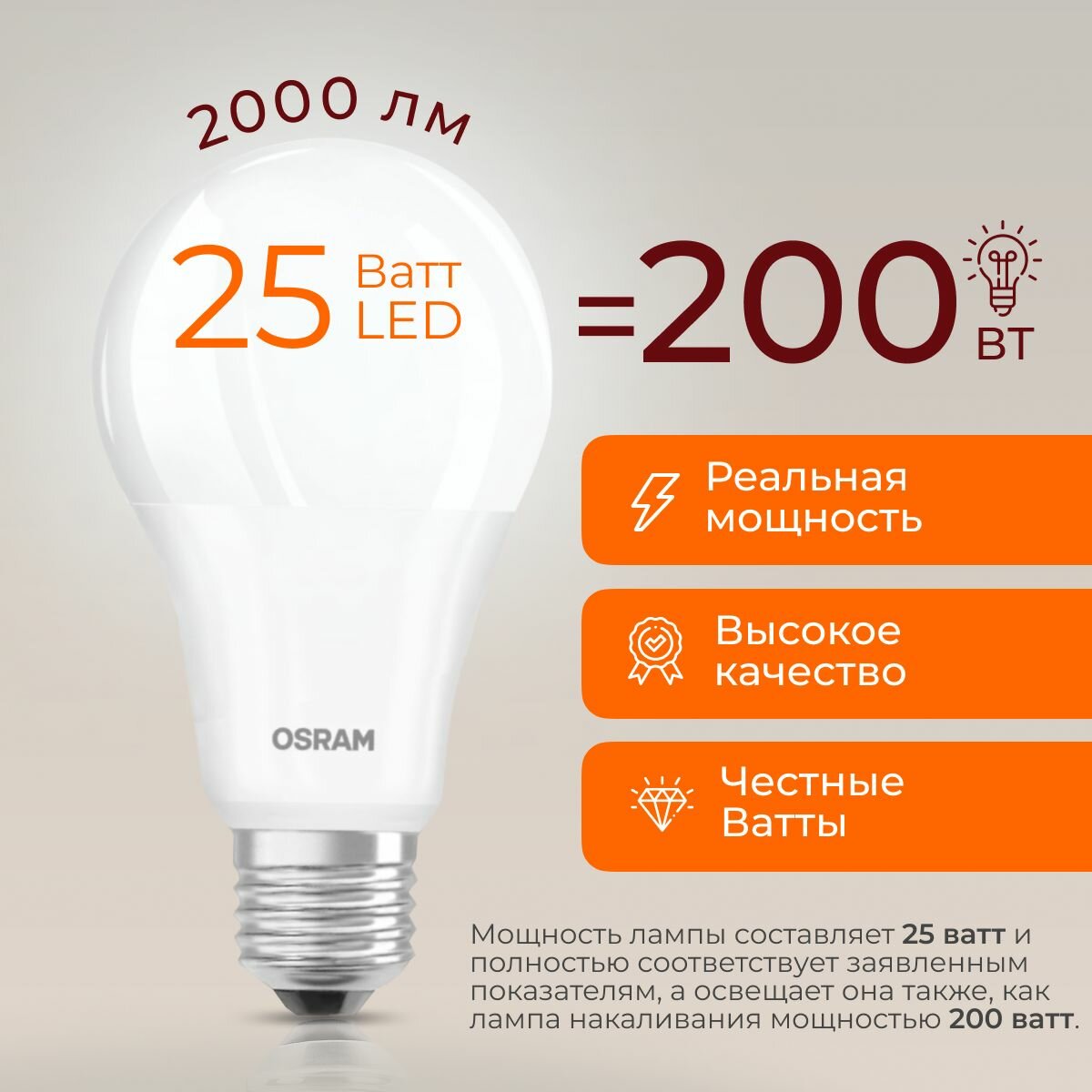 Отзывы на Лампочка светодиодная Е27 Osram 25 Ватт нейтральный свет 4000K Led Value 840 А70 груша матовая 2000лм
