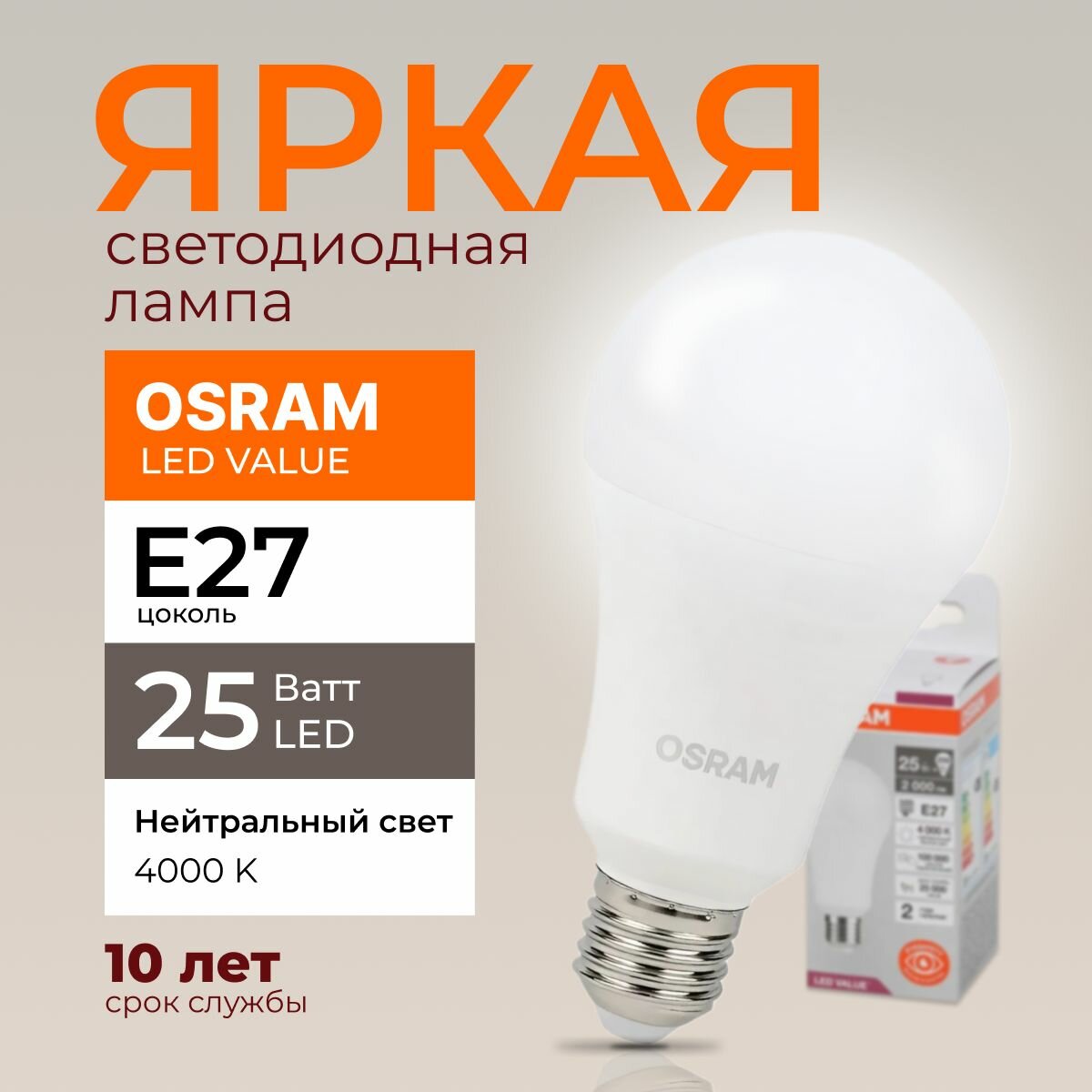 10 цен на Лампочка светодиодная Е27 Osram 25 Ватт нейтральный свет 4000K Led Value 840 А70 груша матовая 2000лм