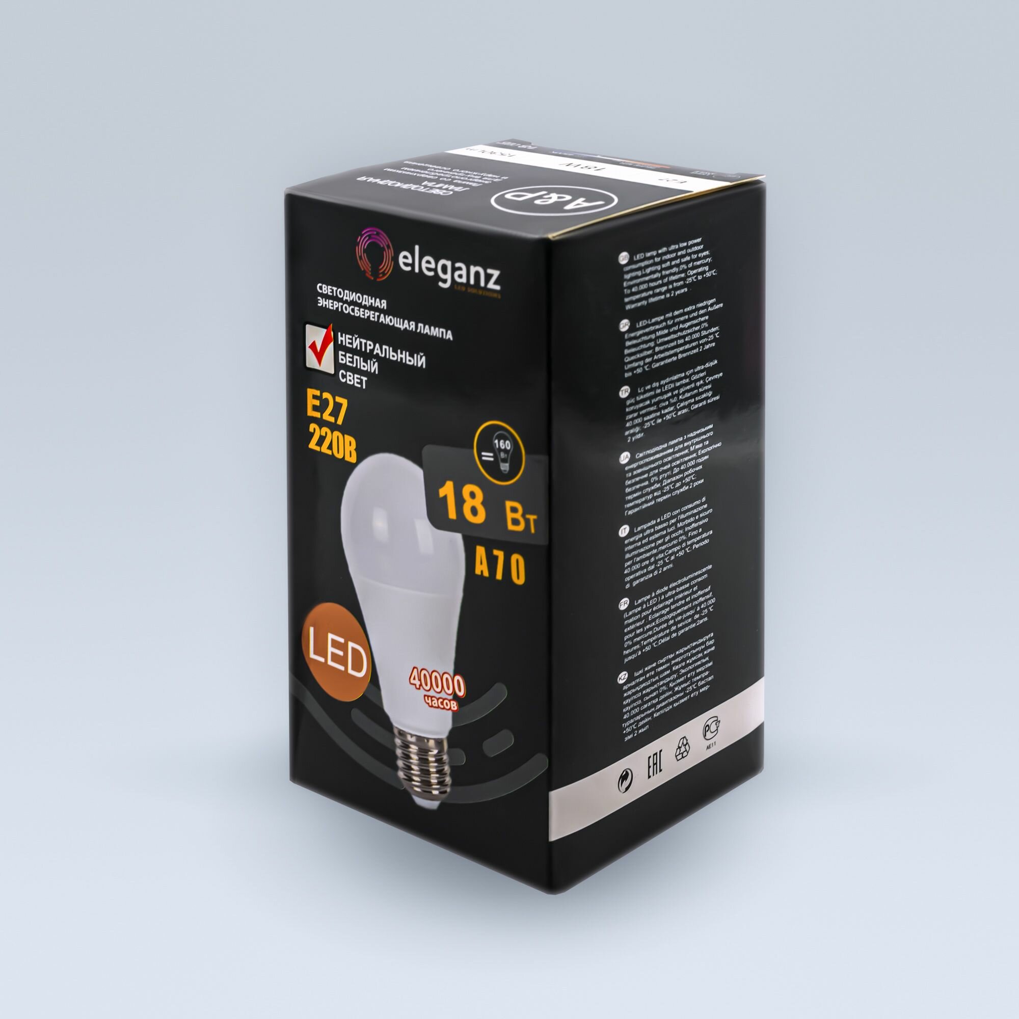 Лампочка светодиодная (матовая) "Eleganz" 18вт, 220в, 1500Лм, 4500К, лампа е27 (упаковка 10 шт.) информация: