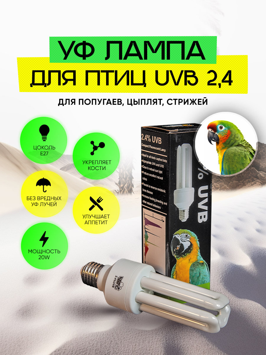 Ультрафиолетовая лампа для птиц и животных 20W 2,4 UVB информация:
