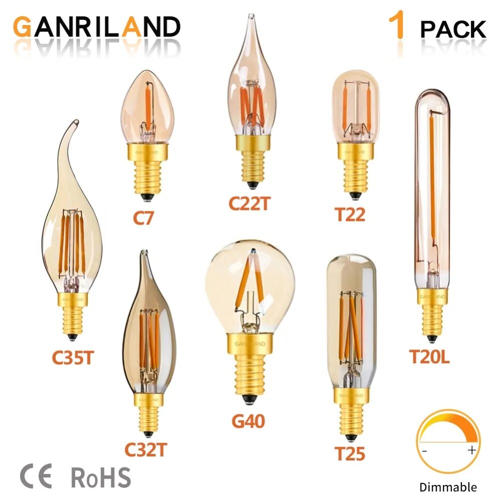10 цен на GANRILAND Светодиодная лампочка E14 золотистого цвета, Gold Tint, E14 220V-240V, C35TGS 3W 2200K, Да
