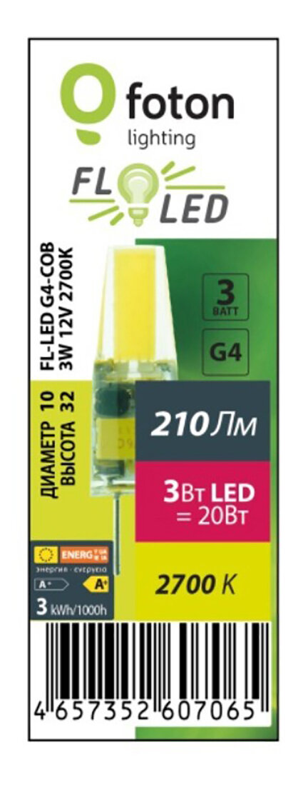 1шт/уп. Лампа LED Капсула 6Вт 220-240V G9 PIN 420Лм 6400К Угол 360 град. D-16mm L-50mm Свет Холодный белый Foton Lighting, уп. 1шт информация: