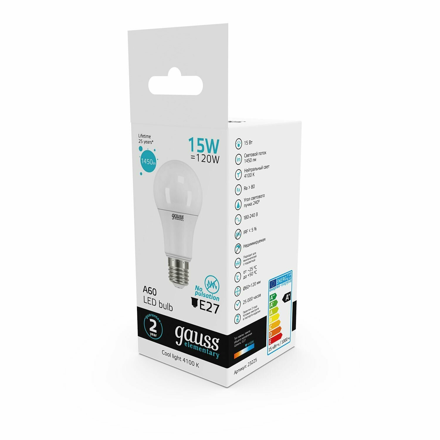Отзывы на 3шт/уп. Лампа LED Груша 15Вт 230B A60 E27 1450Лм 4100К Свет Нейтральный белый арт. 23225 Gauss, уп. 3шт