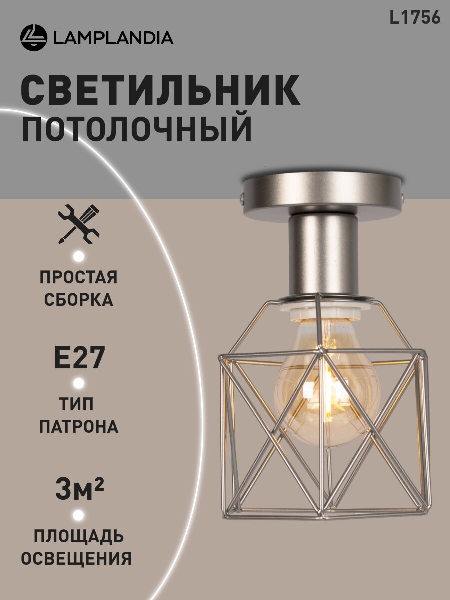 Отзывы на Светильник потолочный Lamplandia L1756 IVIKA SILVER, Е27*1 макс 40Вт