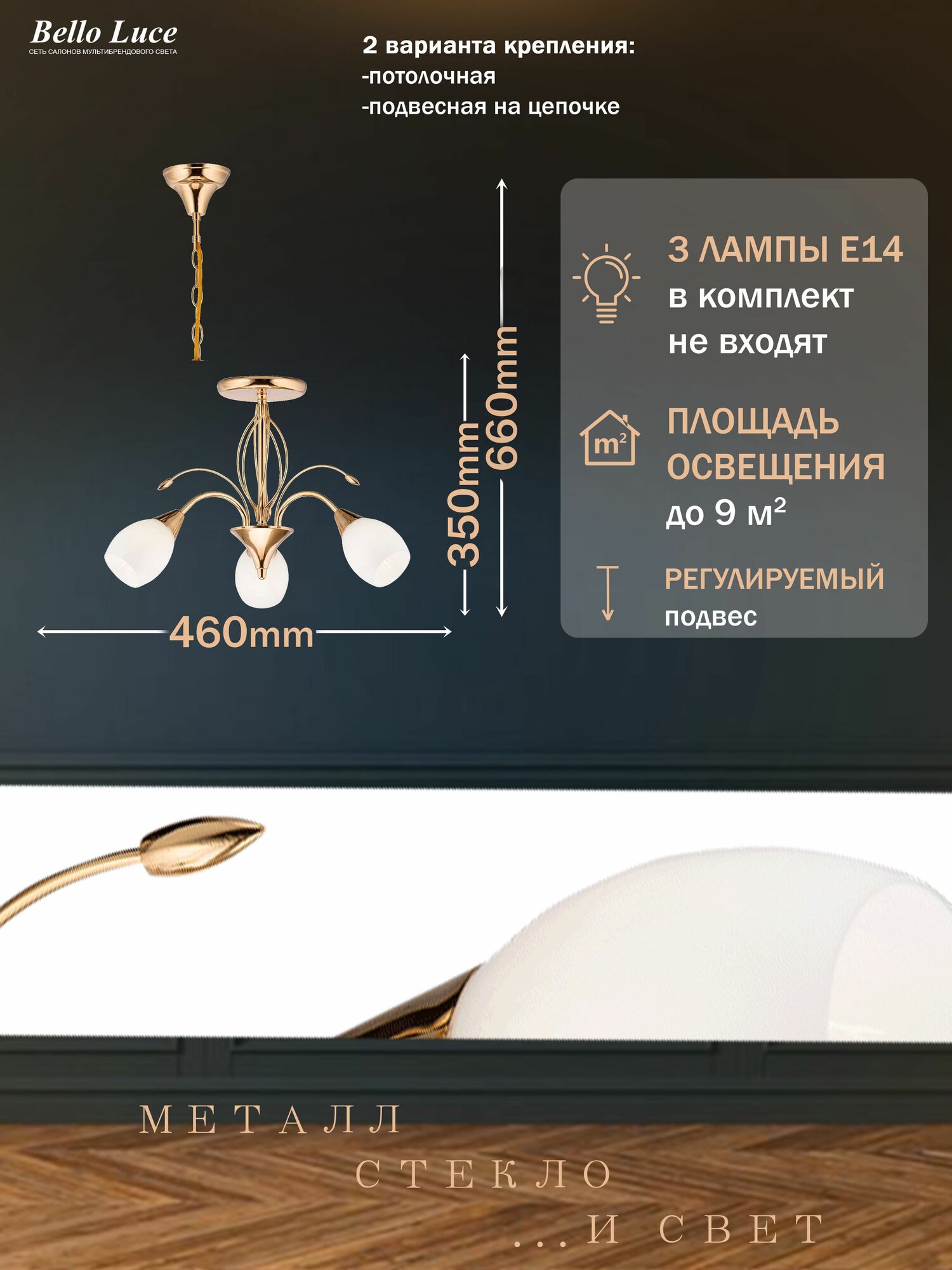 Люстра Престиж золото подвесная/потолочная на 3 лампы E14, регулировка по высоте информация: