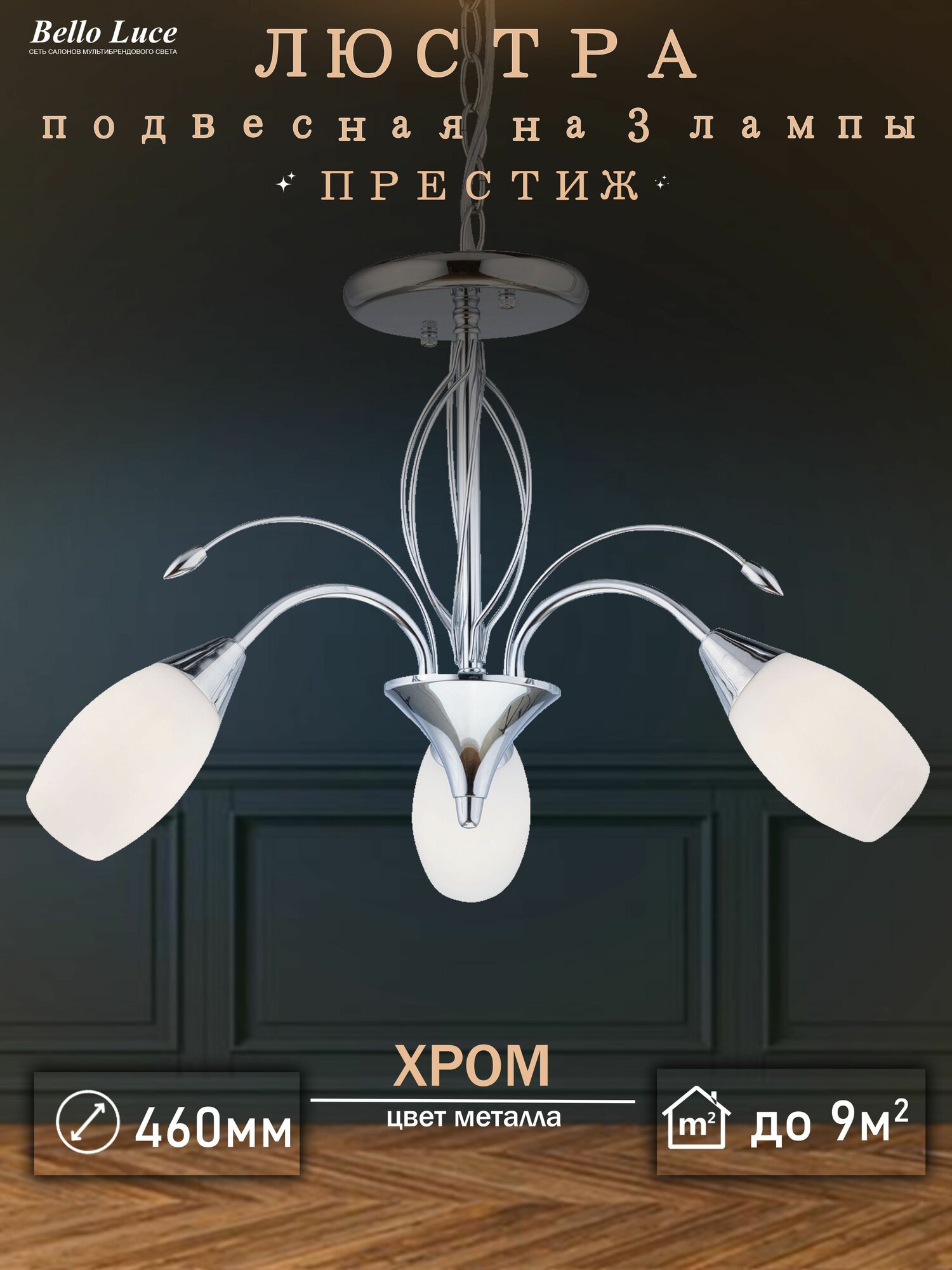 Люстра Престиж хром подвесная на 3 лампы E14, регулировка по высоте информация: