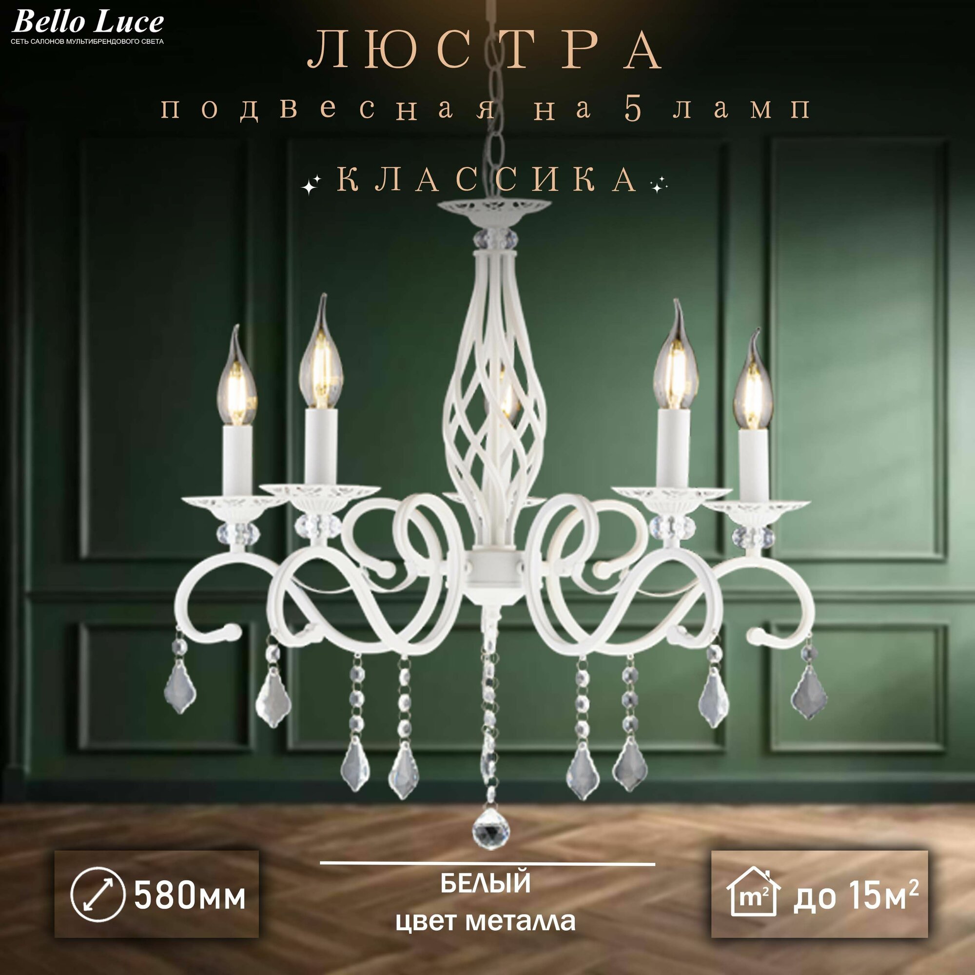 10 цен на Люстра Классика подвесная белая с прозрачными хрустальными подвесками на 5 ламп E14, регулировка по высоте