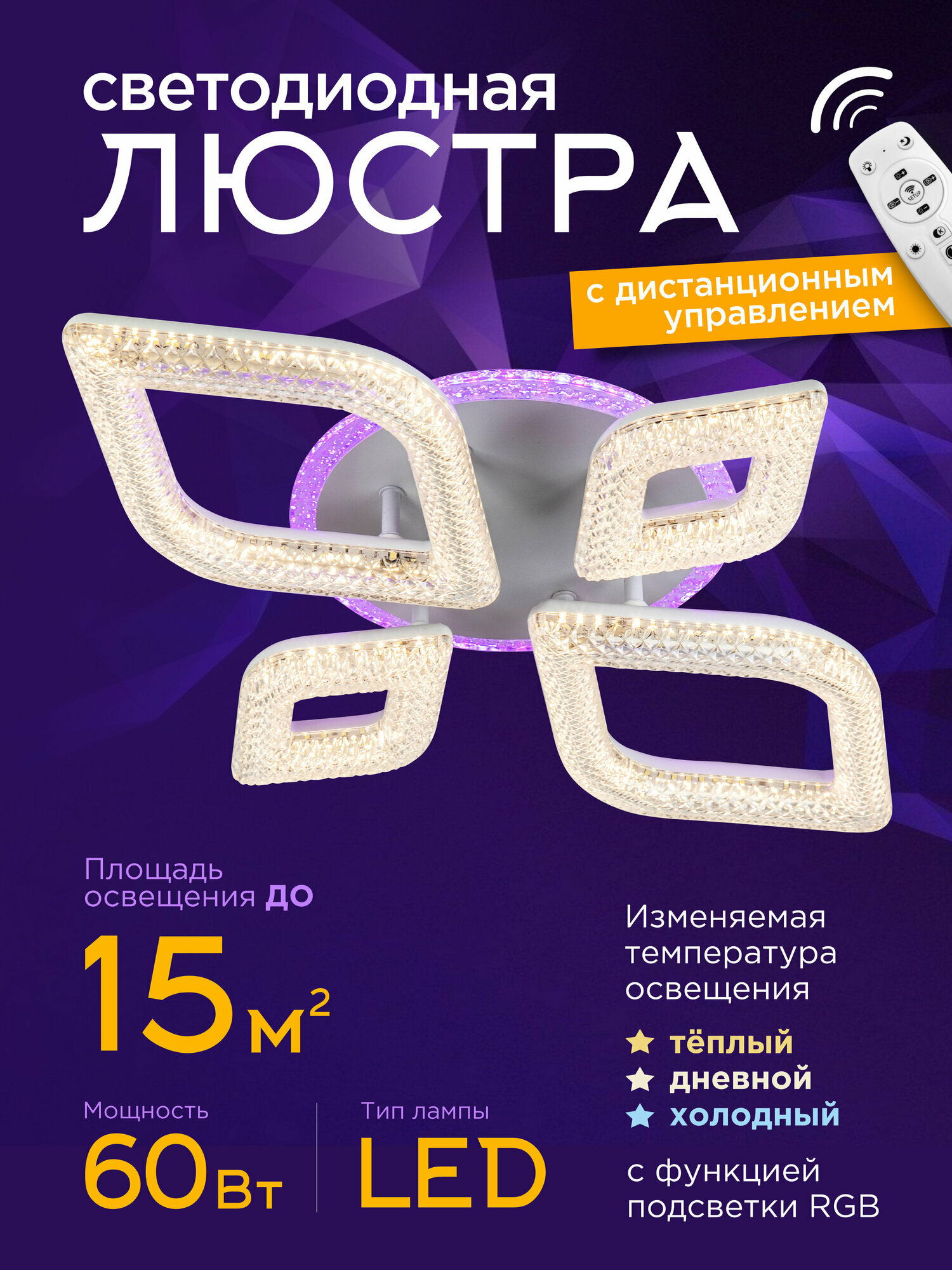 Люстра LED4U L3568-4, LED, дистанционное управление, пульт, IP20, 55 Вт 5 456 ₽