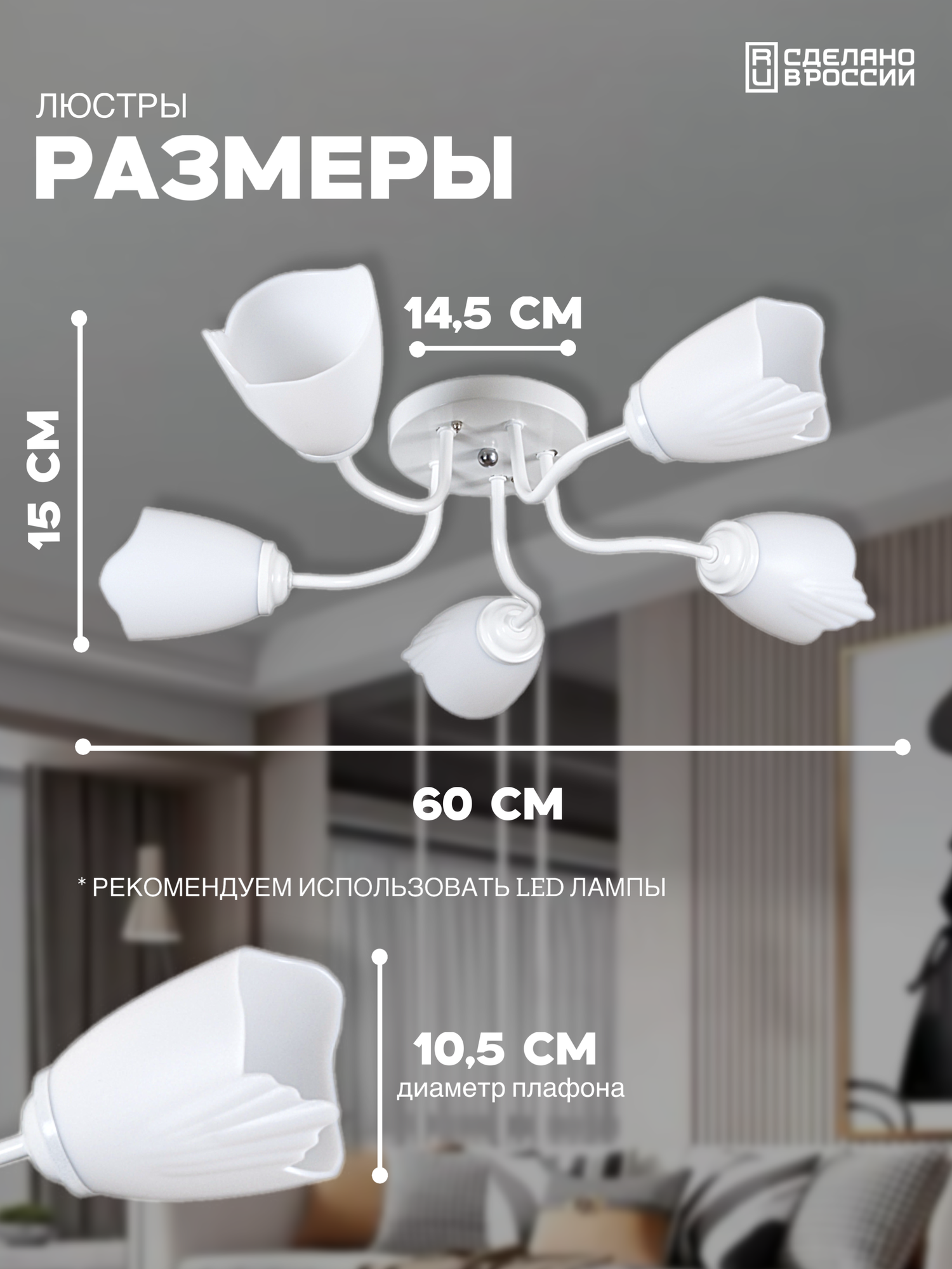 Отзывы на Люстра потолочная Люстры Даром в гостиную на 5 плафонов белый цвет