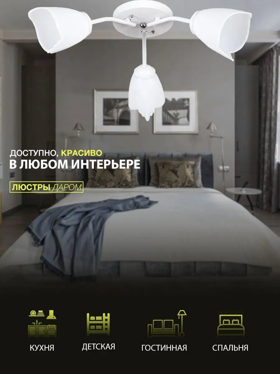 Потолочная люстра для гостиной, детской, кухни, прихожей, коридора и зала Люстры Даром, белый цвет 906 ₽