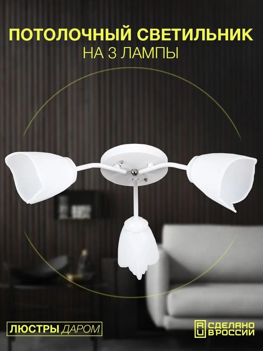 Люстра полоточная Люстры Даром в гостиную белый цвет на 3 плафона 1 375 ₽