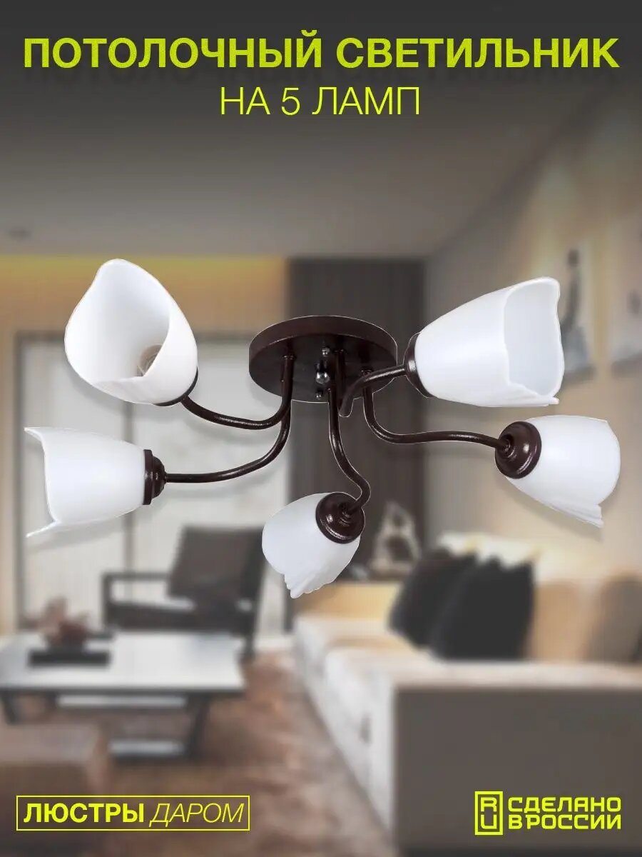 Люстра потолочная Люстры Даром в гостиную белый/коричневый на 5 плафонов 1 798 ₽