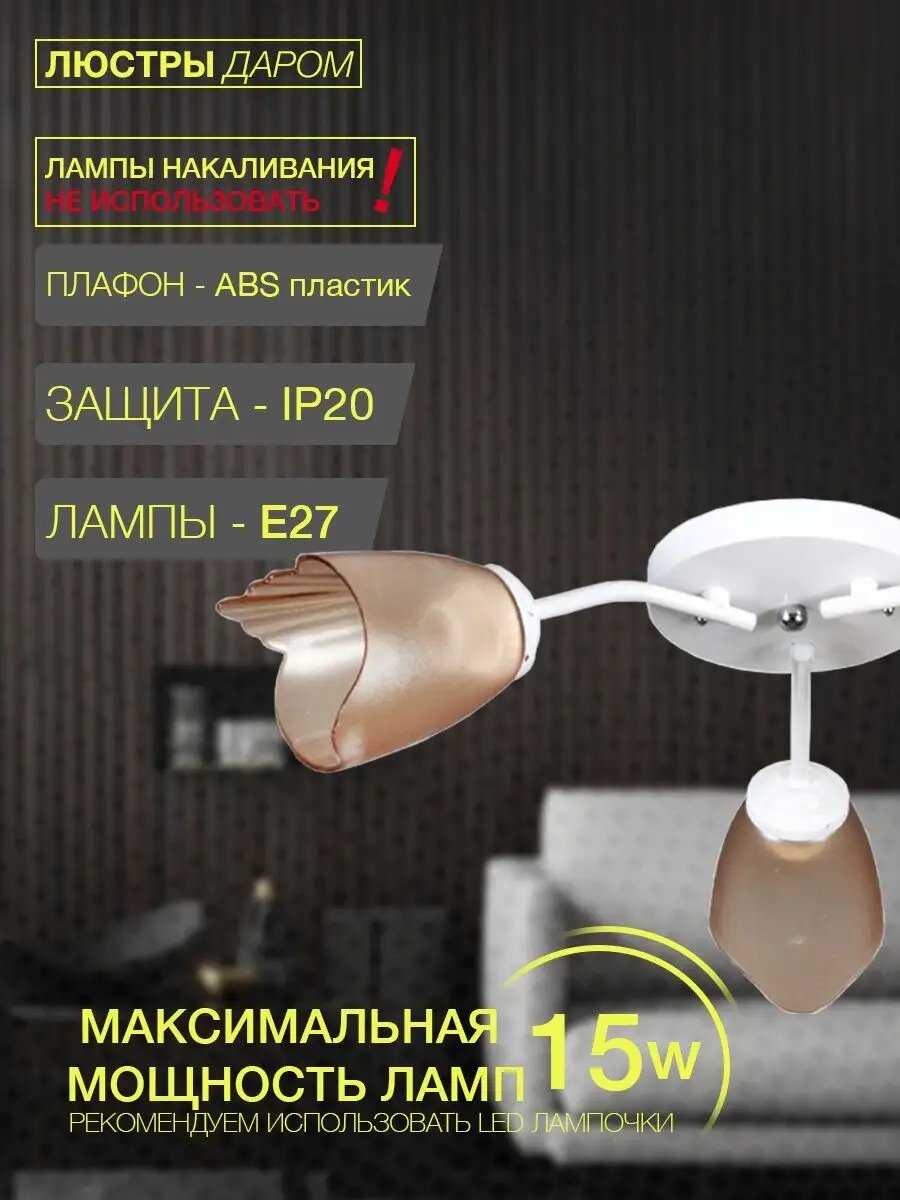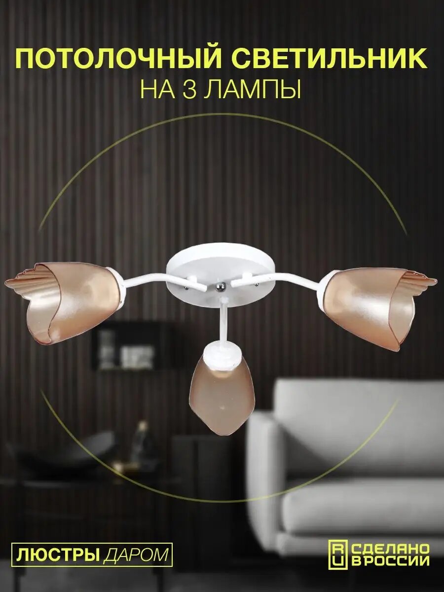 Люстра потолочная Люстры Даром в гостиную белый/коричневый на 3 плафона 1 470 ₽