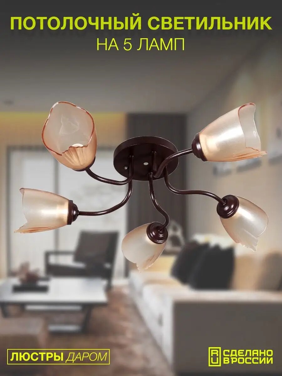 Отзывы на Люстра потолочная Люстры Даром в гостиную, коричневый цвет, на 5 плафонов