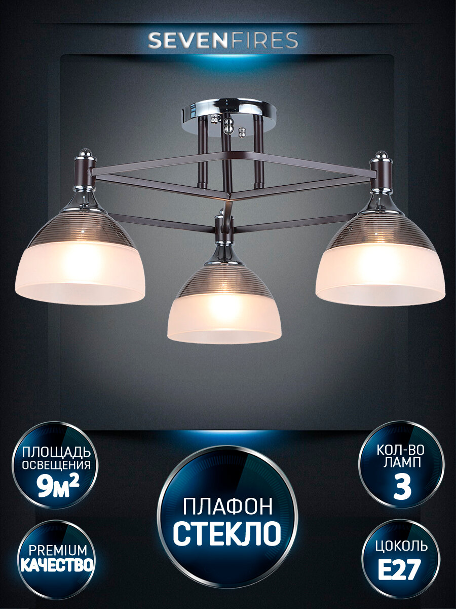 Люстра потолочная Семь Огней, со стеклянными плафонами на 3 лампочки информация:
