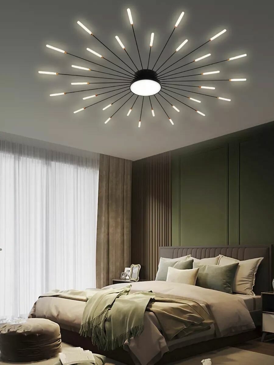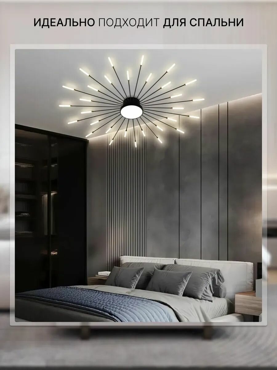 Отзывы на Люстра потолочная House hallow "Sun", LED, 72 Вт, 30 ламп, белый плафон, чёрное крепление
