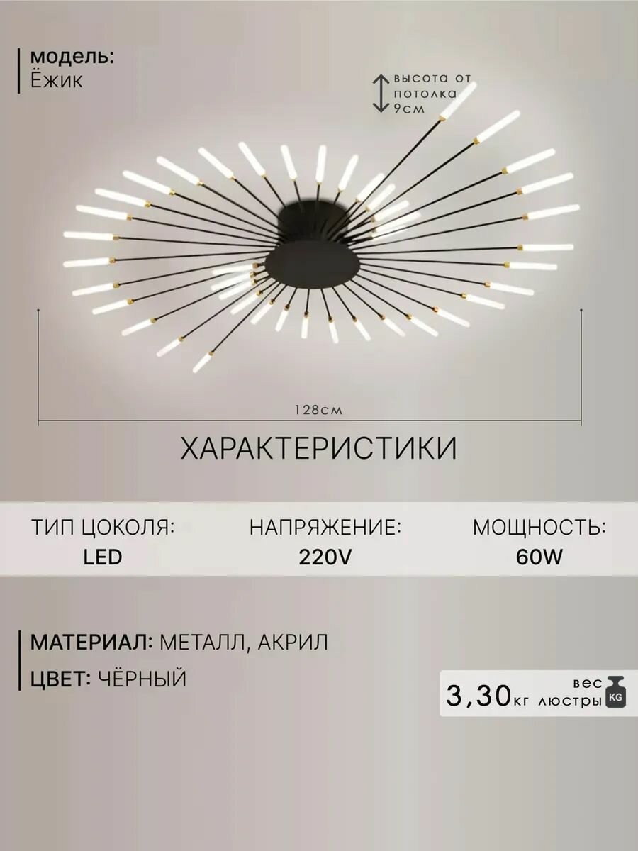 Люстра потолочная House Hallow Ёжик Black, LED, 18м², 60W, 42 лампы, IP20 информация: