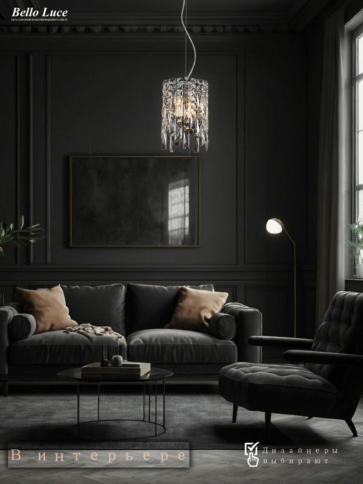 Люстра Cristallo хрустальная хром подвесная с прозрачными хрустальными подвесками на 1 лампу E14, регулировка по высоте информация: