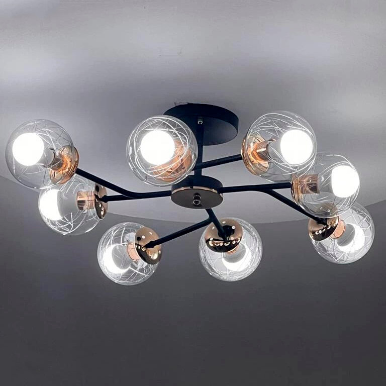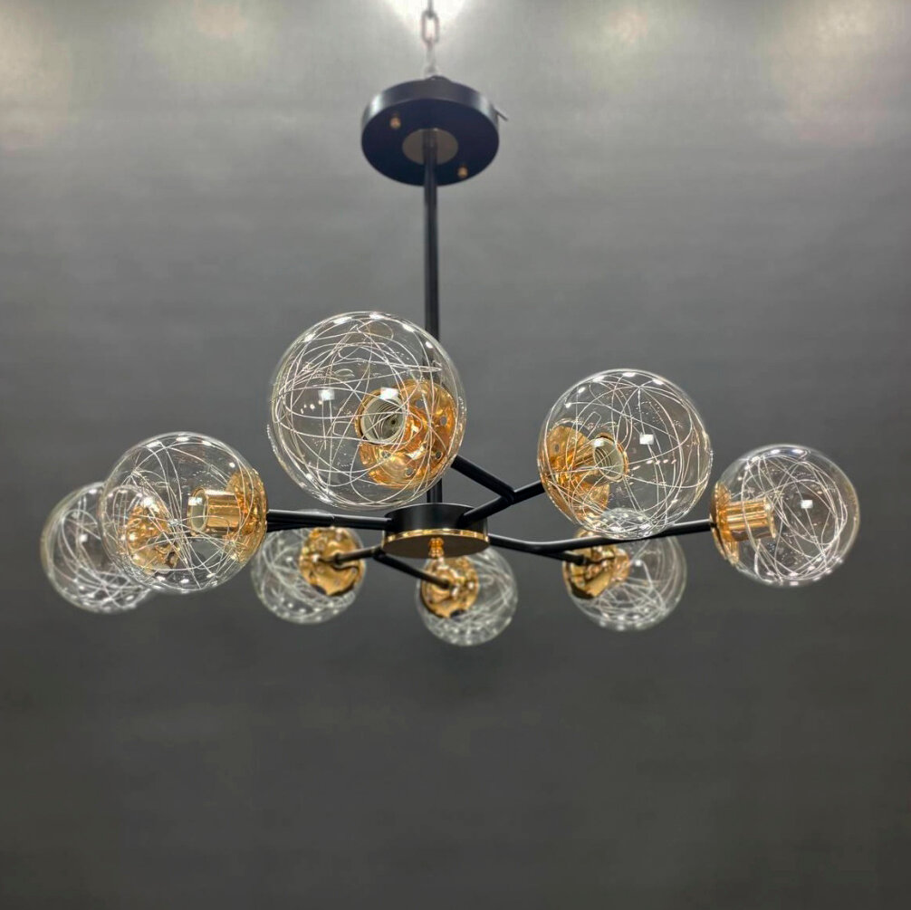 Отзывы на Люстра потолочная подвесная на 8 ламп, стеклянные плафоны, цоколь Е27