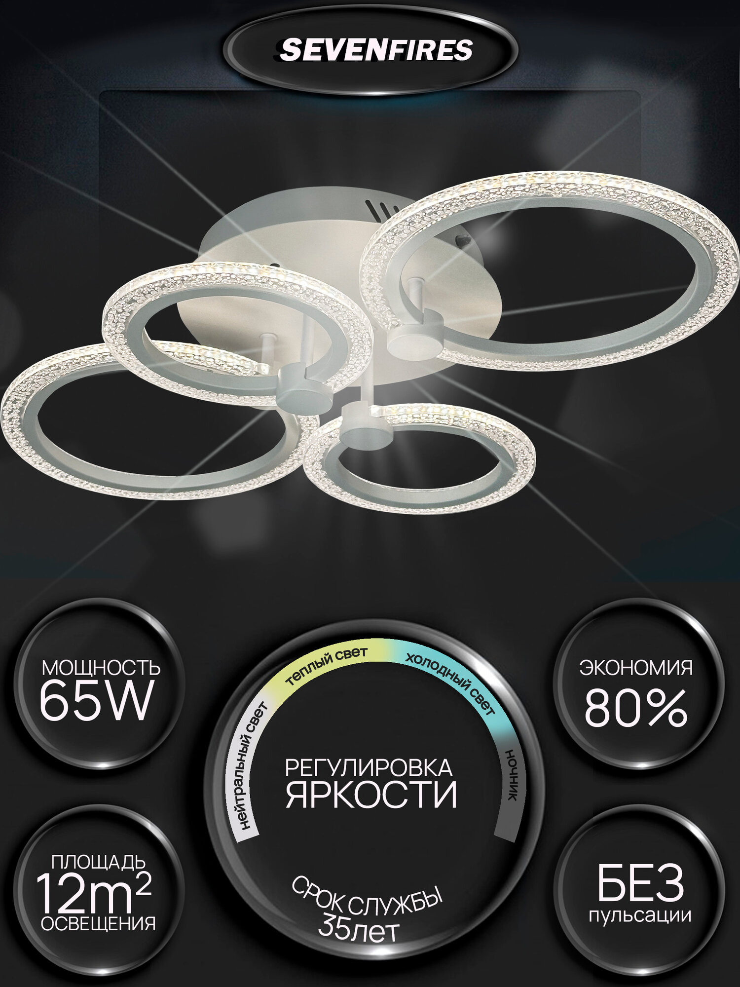 10 цен на Люстра потолочная светодиодная Семь Огней, белая , с пультом, на площадь до 12 кв. м.