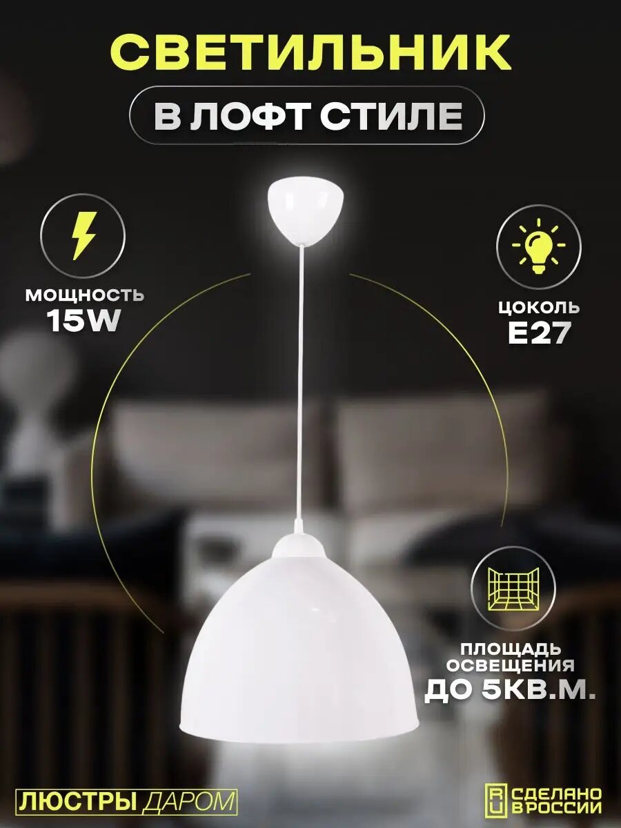 Светильник потолочный Люстры Даром подвесной Ø 23 см, белый лофт 1 716 ₽