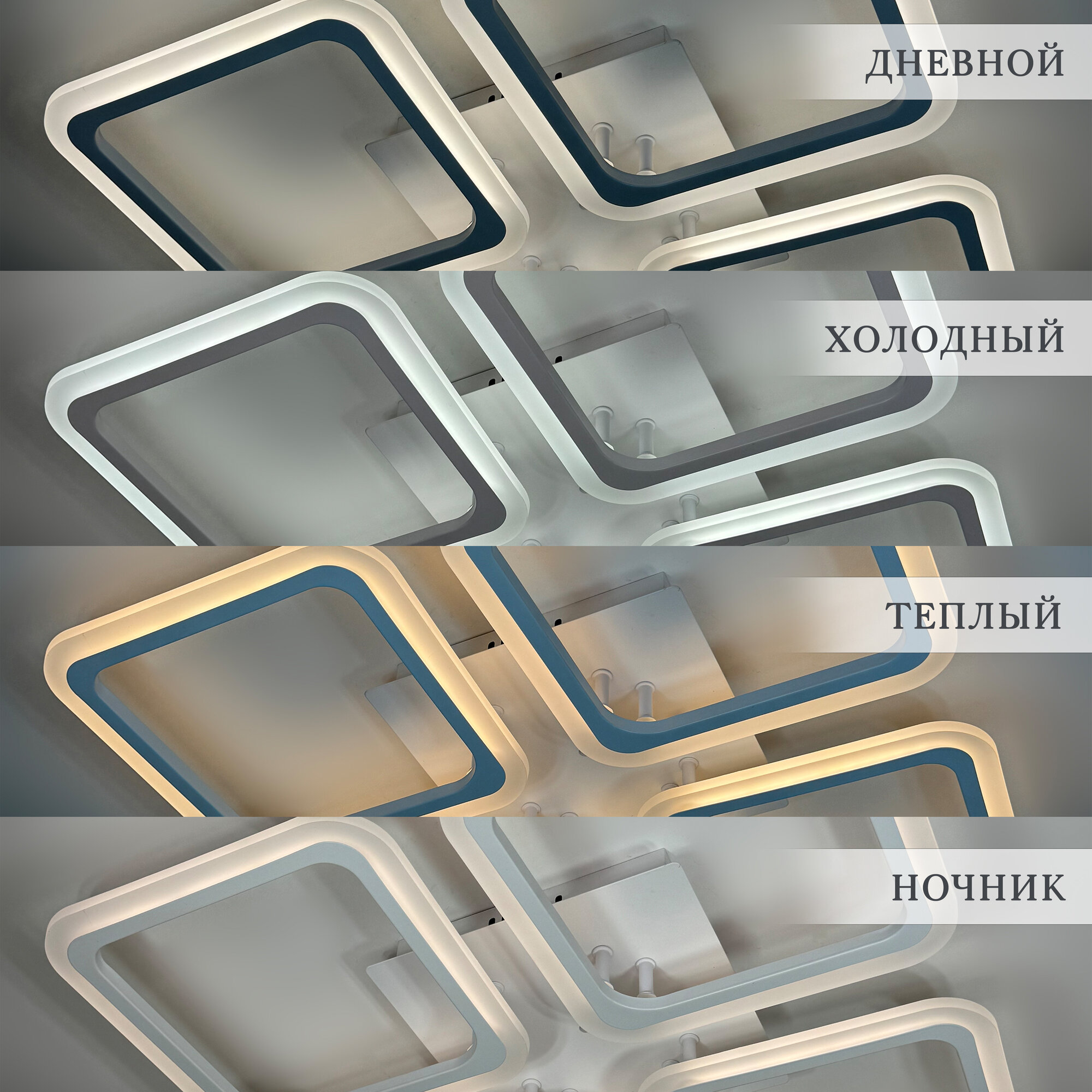 Отзывы на Люстра потолочная светодиодная с пультом 104w, белая, квадраты