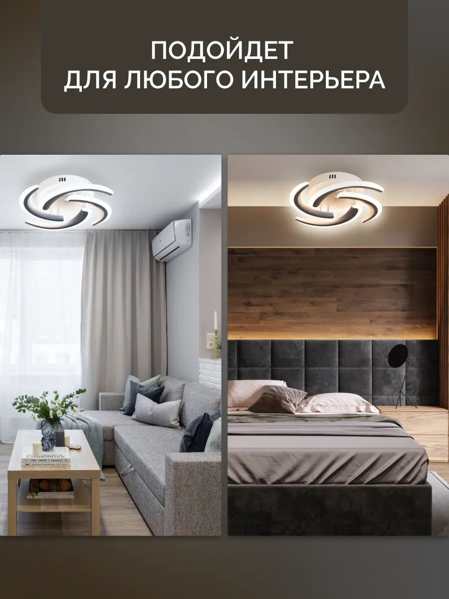 Управляемая люстра светодиодная потолочная c пультом LuarLed HotWheels 50 Вт 20 м² 3500-6500К для кухни, гостиной 4 570 ₽