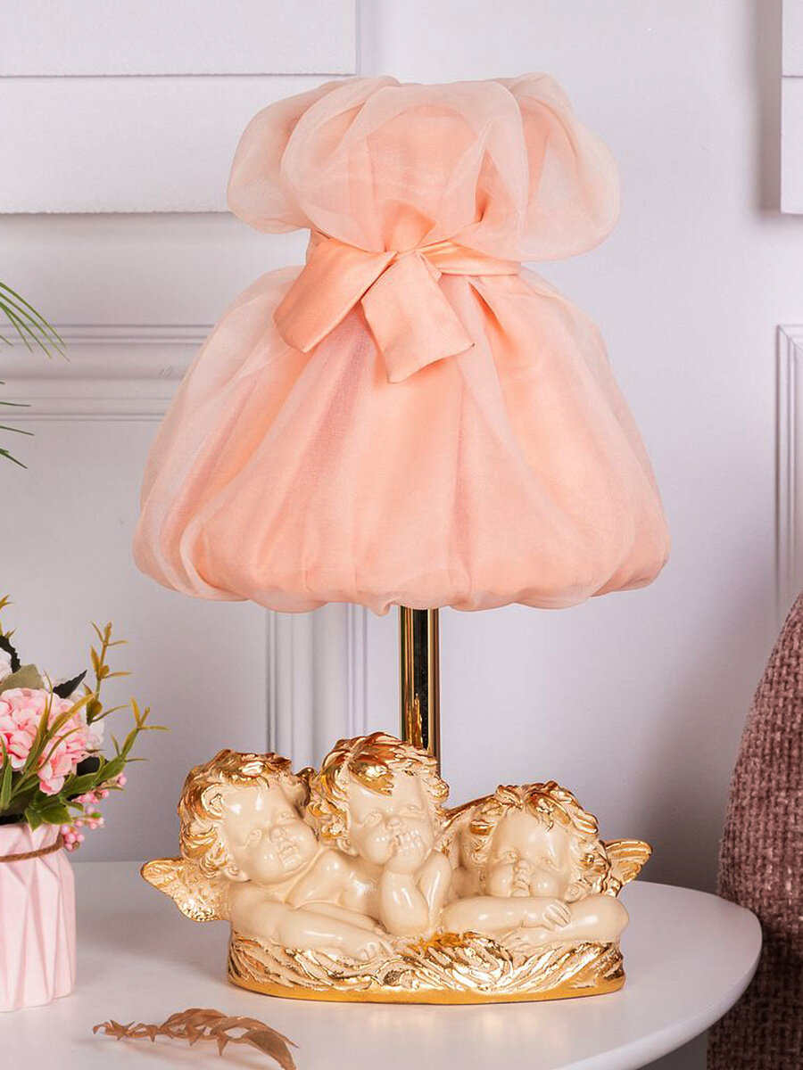 Настольный светильник Bogacho Веселые Купидоны на фигурной ножке с абажуром для украшения интерьера спальни и гостиной информация: