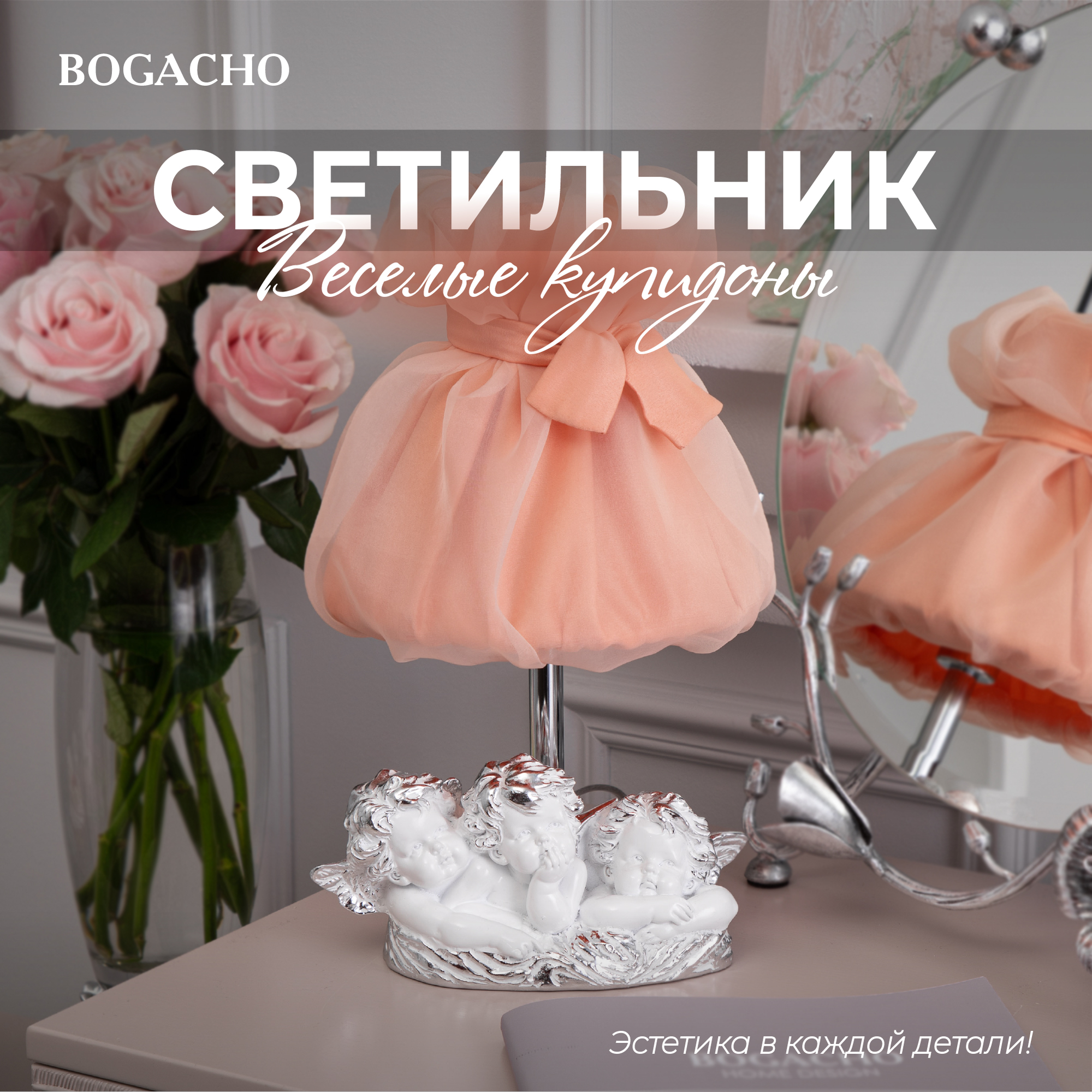 Отзывы на Светильник настольный Bogacho Веселые Купидоны белый с серебром с абажуром Мадлен пудрового цвета