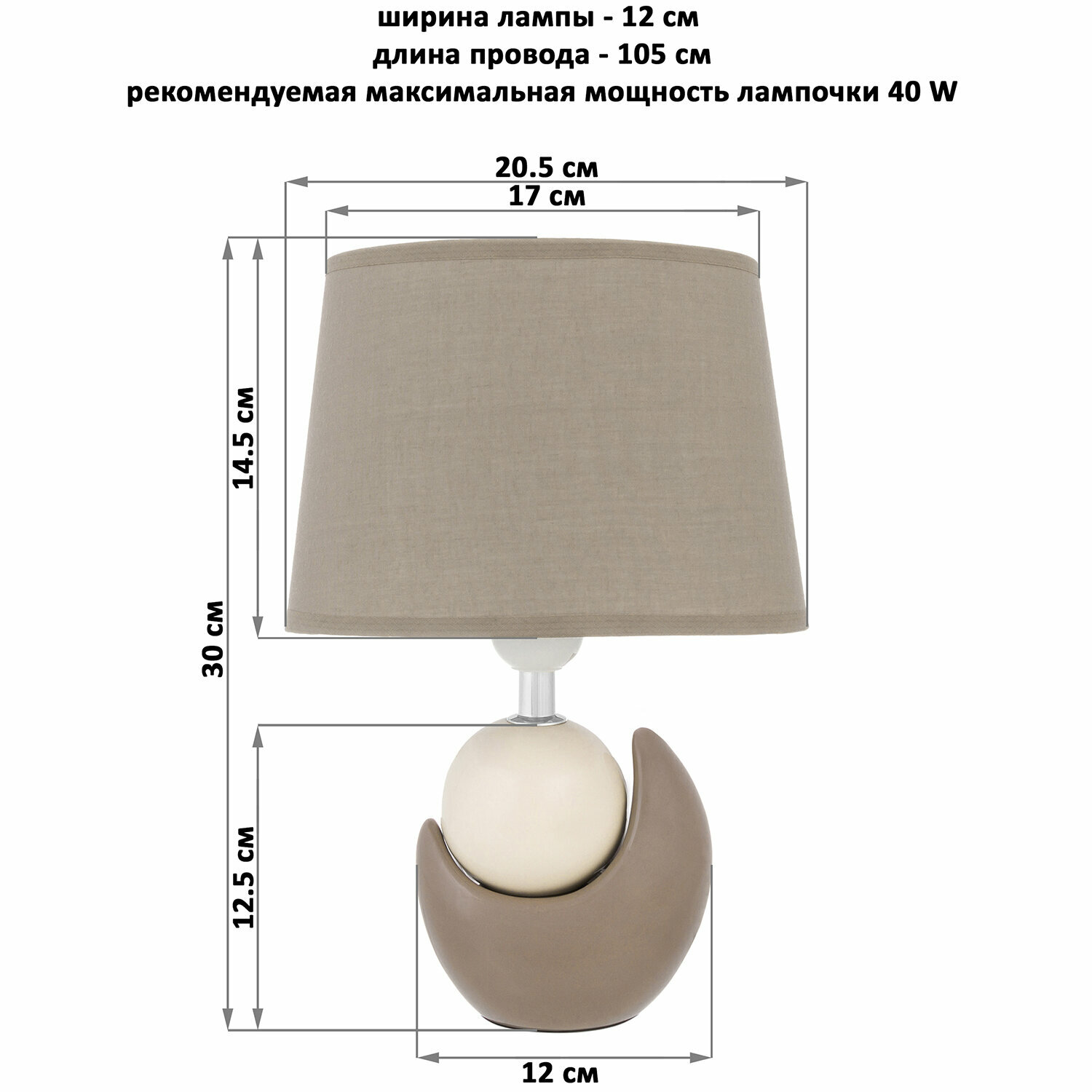 Настольная лампа 20,5х12х30 см Elan Gallery Мечта бежевая с коричневым овальным абажуром информация: