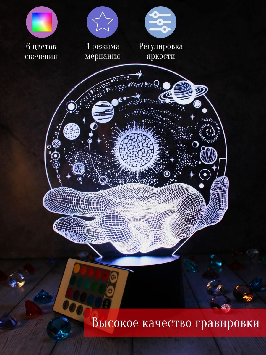 Ночник с пультом в подарок дочери подруге любимому сыну девушке парню день рождения сюрприз 3D рука информация: