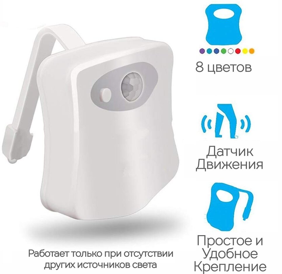 Подсветка для унитаза с датчиком движения и освещенности, 8 цветов информация: