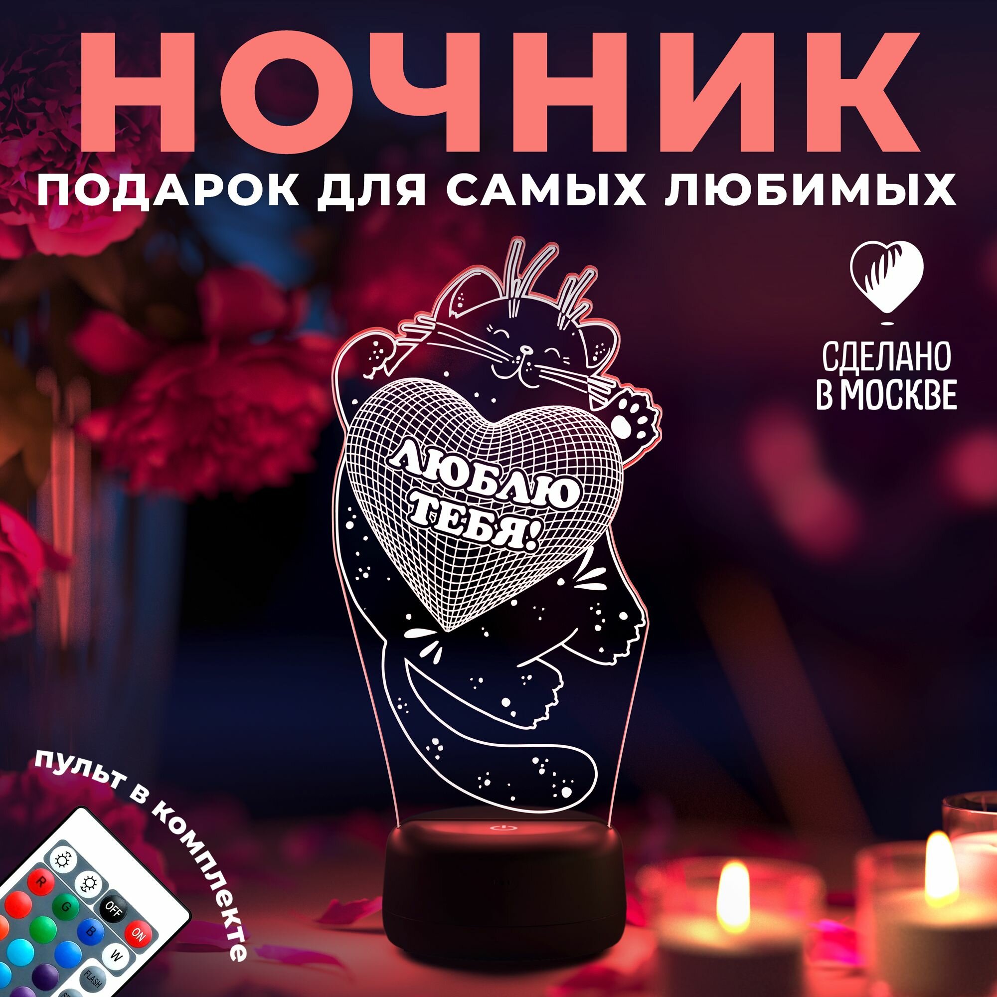 10 цен на Ночник Кот с сердечком (люблю тебя) девушке, любимому на 14 февраля