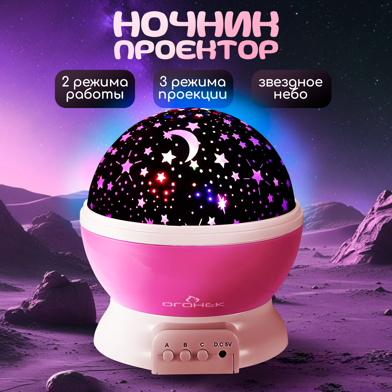10 цен на Ночник детский звёздное небо (USB) Огонёк OG-LDS31 Розовый