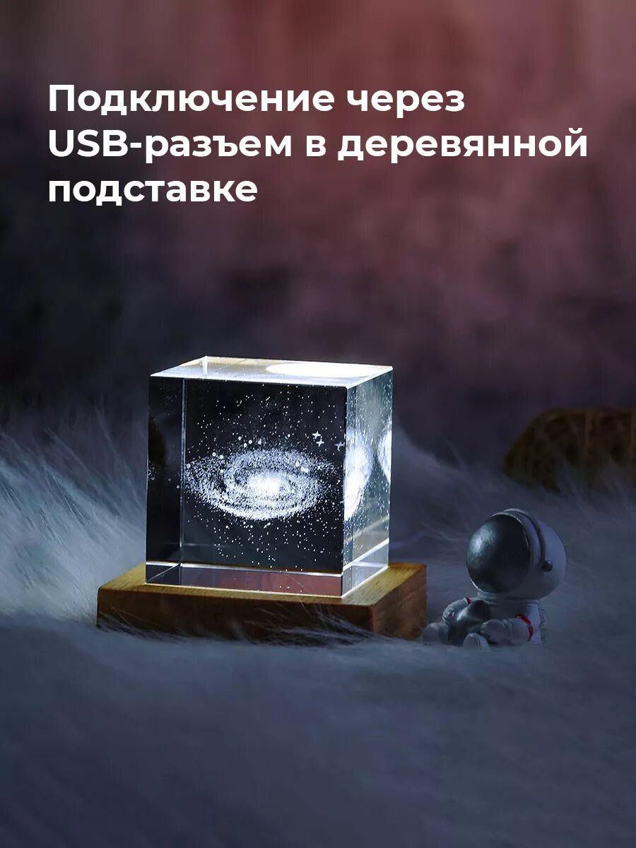 Прикроватный ночник-светильник хрустальный куб Galaxy с подсветкой 6х6 см информация:
